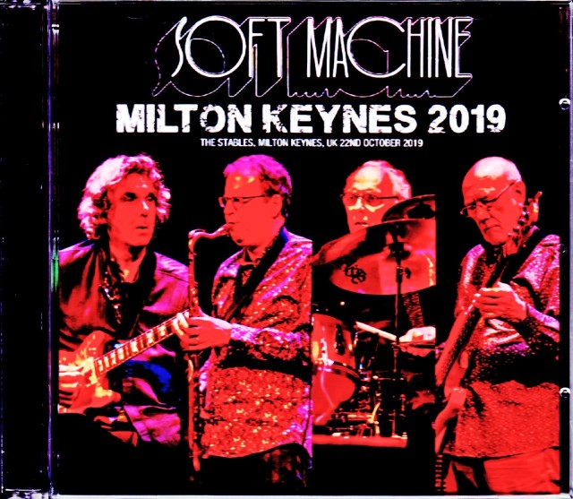 ・6月8日:CLOSE TO THE RAIN・7月27日+8月2日:欧州#1(2公演)・10月10日-30日:英国#2(7公演)←★ココ★・11月10日-30日:欧州#2(6公演) これが現在までに公表されている2019年のスケジュール。現在は最後の「欧州#2」が始まったところで、今月末までには完遂される予定です。このツアーをもってマーシャルとバビントンは引退すると言われておりますが、その一方でセオ・トラヴィスは2020年に新作アルバムの製作に入りたいという意向も表明。それがSOFT MACHINE名義になるのか、そこにマーシャルやバビントンも参加するのか。詳細はまだ伝わっておりません。そんな中で、本作のミルトン・キーンズ公演は「英国#2」の3公演目にあたるコンサートでした。「SOFT MACHINE」「ミルトン・キーンズ」でピンと来る方も多いことでしょう。本作は、当店で“英国の巨匠”でお馴染みの名手によるもの。この人物は80年代からロンドン近郊で英国シーンを録音し続けている録音家で、ミルトンキーンズの“ステーブルズ・シアター”は数々の名作を生み出してきた彼の庭ともいうべき会場。現行の4人でSOFT MACHINEを名乗るようになった2015年以降でも『MILTON KEYNES 2015』や『MILTON KEYNES 2016』『MILTON KEYNES 2017』と、同会場・同録音家の傑作を量産。本作は、その最新弾になるのです。長年の経験でバンドの出音も会場音響も完全に熟知しているだけあって、本作もまさに傑作。空間感覚のあるオーディエンス録音には違いませんが、その空気はクリスタル・クリアに透き通っており、微細部まで超克明。距離感どころか、むしろ絶品の鳴りがクッキリとした芯に眩惑感を与え、イマジネーションを何倍にも膨れあがらせている。視覚的に喩えるなら闇に浮かび上がる金管の上品な金属光沢のようであり、スポットライトに照らされたグラスワインかのよう。つまり、恐ろしく透き通っていながら色つやがクッキリと際立っている。一点の曇りや濁りもなく、それでいて極めてカラフルな音空間なのです。この闇に浮かび上がるおゆな感覚は、空間を感じさせるオーディエンス録音でしかあり得ず、無音の闇が深いクリア録音だからこそ現出するもの。「いかにサウンドボードに近いか」という観点ではなく、「客録だけの美」を極めたような美録音なのです。これまでに以上に美しいサウンドで描かれるのは、かつてなくカラフルなショウ。ここでセットの内容を整理しておきましょう。●70年代(8曲)・FOURTH:Kings and Queens・SIX:Gesolreut/Chloe And The Pirates・SEVEN:Penny Hitch/Nettle Bed・BUNDLES:The Man Who Waved At Trains/Hazard Profile Part One・その他:Sideburn