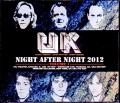 2010年代のプログレ界最大の話題となった「NIGHT AFTER NIGHT」期のウェットン、ジョブソン、ボジオのトリオ編成での「UK」再結成ツアーは5月1日から21日まで、北米にて全15公演が組まれ、その後、5月24日から30日まで、ギターにアレックス・マカセック、ドラムにゲイリー・ハズバンドの4人編成で、ロンドンとヨーロッパにて5公演、そして多くのファンを感涙させた6月の日本ツアーが行われました。本セットは、12年再編北米ツアーより、最初の3公演である、5月1日シカゴ、2日フォックスボロ、4日ニューヨークでのライブをそれぞれ、超高音質オーディエンス録音で完全収録した6枚組です。音質は3公演とも、現代のデジタル録音らしく、大変素晴らしいもので、更に適度なリマスタリングを施した、大変高品質なセットタイトルに仕上がっています。33年振りに実現した、トリオ編成の再結成ライブは、歴史的にも非常に重要であり、ウェットン・ファンのみならず、全てのプログレ・ファン必携の音源集と言えるでしょう。音質的にフォックスボロとニューヨークがかなり優れており、この2公演に比べるとシカゴ公演録音が普通の高音質録音に聞こえますが、そのシカゴ公演ですら、実際は、普通に2枚組でリリース出来るほどに優秀であり、この貴重なライブを、ここまで優秀な音で録った、それぞれのテーパーに感謝な6枚組であります。初演シカゴ公演のジョブソンののMC(Fallen Angelの後)で聞ける通り、3人は前日に合流し、リハーサルは一日しかなかったとのことで(観客も驚いている様子)、演奏自体はかなりラフ&ワイルドではありますが、リハ一日で、これだけ複雑な楽曲をメインに2時間近いライブが出来るとは、やはり「流石」と言えるのではないでしょうか。特に初日、シカゴの演奏は、再編初の公式ライブということで、特別なムードに溢れており、ファン絶対必聴です。適度な臨場感からも、スペシャルな時を共有しているという興奮・緊張が音から伝わってくる感じです。ジョブソンによるキング・クリムゾンの思い出を語るMCの後に演奏されるFallen Angelは感動的。セッション風の演奏ながら、観客の熱狂的なムードも重なり、とても良い演奏が堪能できます。続いては、ツアー2公演目のフォックスボロ公演。音質は群を抜いて優れており、聴きやすいのですが、残念なことに、キーボードにトラブルが多発しており、それが災いしてか、アンサンブルの乱れが余計に激しくなってしまうパートが散見されます。よってこの日のみジョブソンのキーボードソロタイムは無く、バイオリンソロのみ披露しています。シカゴは、初演らしい歴史的ライブの感触が素晴らしいテイクですが、この日は、全体的に精彩を欠いた内容になってしまったのは残念。最後は3日目のニューヨーク公演。こちらも、現代のデジタル録音らしい、クリアーでパンチの効いた非常のレベルの高い極上音質で収録されています。全体の音のバランスも大変良好で、特にドラムサウンドが素晴らしく、ボジオのシャープでアタックの効いた痛快なドラムを楽しむには本音源が最適かもしれません。バンドアンサンブルが一日で劇的に向上するわけは無いのですが、バンドのお披露目としては最重要なニューヨーク公演ということもあって、メンバー全員がポジティブなフィーリングに満ちたエモーショナル感溢れるライブを聴かせてくれます。ボジオのドラムソロ等凄まじいばかりで、初日は8分、2日目は9分のソロでしたが、このは13分ものロング・ドラムソロを披露しています。演奏は、明らかにフォックスボロ公演以上のものを聴かせてくれており、曲中で、躊躇なく、好き放題に叩きまくるボジオのプレイの数々に、ファンは興奮して聞き入ってしまうこと間違いありません!全公演を通して言えることは、とにかくこのツアーではジョン・ウェットンのボーカルが安定しており、全編非常パワフル。この時期の調子の良さが感じられます。問題はテリー・ボジオが曲を覚えていないので、それにつられて、アンサンブルが滅茶苦茶になる箇所が多発する事ですが、個々のプレイそのものは3人とも衰えを一切感じさせない素晴らしいもので、聴き応えは抜群です。歴史的にも大変重要な、真のUK再結成ライブ・ツアー冒頭3公演を、パーフェクトなサウンドで完全収録したファン必携の6枚組タイトル。