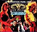 80年代HR/HMの英雄達が一同に会した伝説の“MONSTERS OF ROCK TOUR 1988”。その主役2組を極上体験できる新発掘ライヴアルバムが登場です。そんな本作が記録されたのは「1988年7月16日サンフランシスコ公演」。そのヘッドライナーであるVAN HALENと、準トリのSCORPIONSをカップリングした3枚組です。“MONSTERS OF ROCK TOUR 1988”の全28公演中24公演目にあたるコンサートだったわけですが、そんなショウで記録された本作は実にクリアで素晴らしい新名作。発掘の名門「Krw_co」が発表した新発掘音源で、大元マスターからダイレクトにデジタル化された銘品なのです。そのサウンドはとにかく瑞々しく、骨太なダイレクト感が胸にすく。スネアの鳴りには空間感覚もあるのですが、それが遠さにならず、ヴォーカルやギターがグイグイと迫ってくる。その要因は、恐らく会場。現場となった“キャンドルスティック・パーク”は6万人超という巨大なスタジアムなのですが、ドームではなく天井が大きく開いたオープン・スペース。そのため音を反射する壁や天井がなく、PAの出力音を反響ゼロでダイレクトに拾っているのです。とは言え、さすがにPAの直近とはいかなかったらしくサウンドボード的な密着感とも違うのですが、それが沸き立つようなスペクタクルも醸してくれる。特に凄いのは大歓声。6万人の生声の広さは絶大で、コール&レスポンスや煽りの反応も超巨大。シンプルに膨大な群衆であり、なおかつ1人ひとりが燃えている。特にヘッドライナーVAN HALEN編のスケール感は“USフェス”か“LIVE AID”かと思うほどで、80年代のHR/HMがいかに巨大なムーヴメントだったのかを千の言葉よりも雄弁に物語ってくれるのです。そんなスペクタクル・サウンドで描かれるのは、欧州HRと米国HRの象徴たる2組。共に公式ライヴ作のないツアーですが、近い時期にはありますので比較しながらセットを整理してみましょう。DISC 1:SCORPIONS・ラヴドライヴ:Coast To Coast・電獣:Make It Real/The Zoo