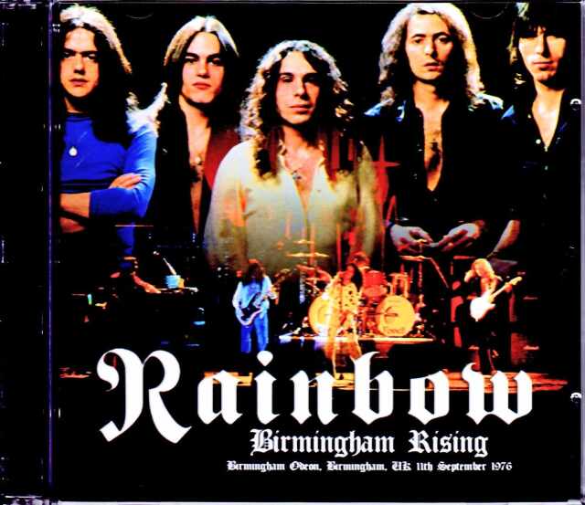 1976年「Rising」アルバムに伴うUKツアーより、9月11日のバーミンガム・オデオン公演を高音質オーディエンス録音でほぼ完全収録。8月31 日ブリストルからスタートしたUKツアーは9月14日のニューキャッスルに至るまで合計10公演が行われ各所で伝説に伝え聴く素晴らしいライブが展開されました。本盤はロンドン2デイズ(9/7-8)に続くバーミンガム公演を高音質で収録しており、あのブラックサバス、ジューダス・プリーストを産み出したバーミンガムらしい、ハードロック・シンパ独特の熱狂的なムードでいっぱいのなか、リッチーが破壊的なショウ展開していく様子を非常にリアルな音像で堪能することができます。とにかくリッチーのギターが物凄くオンに録音されており、やたら大きいので他の楽器やボーカルを食ってしまっているような音像ですが、マスター・クオリティで収録された本盤のサウンドは非常に生々しくクリアーであり、ファンは間違いなく必聴です。殆ど「リッチー・ミックス」と断言しても差し支えない程のバランスで、当然、魔王リッチーはこの日は熱狂的なファンを前に凄まじいプレイを連発しており、「UKツアー最高の演奏か?」と思え るほどに鬼気迫る・緊迫感の持続した見事な演奏をたっぷりと披露してくれます。冒頭のKill The King、 そしてMistreatedの圧倒的な演奏ぶりにファンは、感動の思いで聴き入ってしまうことでしょう。レコーダーの周りのバーミンガムの観客の興奮ぶりは凄まじく、リッチーの一音一音に陶酔して聴き入っている様が浮かんでくるような熱狂的なリアクションもこれまたひとつの聴き所になっているくらいです。 鋼のようなへヴィなSixteenth Century Greensleevesの演奏ぶり、リッチーの独演が神々しい15分近いCatch The Rainbowと、それぞれで圧巻の演奏を堪能することができます。リッチー、リッチーとにかくリッチーの音像にファンはディスク1だけでも十分に大満足できます。ディスク2はMOTSMのイントロのお馴染みLazyを含むギターソロで、ここでも観客は「リッチー、リッチー」と大騒ぎ。MOTSMはますますリッチーの音しか聴こえなくなり、ボーカルも殆ど聴きとれなくなっていまうという音の異常事態が発生します。ただギターの音だけがやたらダイレクトに響きまくる様はやはりファンには堪らないでしょう!ライン録音のようなウルトラクリアーなサウンドで収録されたBluesに続いて、リッチーがSmoke On The Waterのリフをチラ弾きしたときの観客のリアクションは必聴。Stargazerのキーボードイントロは未収ですが、全体が入る直前からしっかりと収 録されています。切れ味鋭いリフが炸裂するStill I'm Sadは本当に凄い迫力でソロパートも絶対必聴です。ついでにファンのリアクションも凄くて、Still I'm Sadの2:10の2回目のブレイクの時の「Oh God!!Yeah!!」は最高です。それまでやや小さめの録音だったコージーのドラムも流石にソロタイムはクリアーに収録されており迫力満点。 Still I'm Sad(Reprise)終演直後の「Ritchie Blackmore!ワーオ!」の叫び声、更に会場を埋め尽くすBlackmoreコール、そしてリッチーの狂乱のソロに続くDo You Close Your Eyes後半ではギタークラッシュが炸裂します。レインボー、リッチー・ファンにとっては今後定番化間違いなしの新たなるマスターピースの登場です。伝説 の1976年バーミンガム公演の圧巻の高品質ライブ・ドキュメント!!