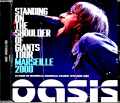 今月のオアシスは音源と映像の二本立てという今までにないパターンでリリースが実現します!こと音源に関しては意外な時代選択から世界中のマニアが驚かされるのではないでしょうか。2000年のアルバム「STANDING ON THE SHOULDER OF GIANTS」はワールド・ツアーのスタートが日本、その後ツアーはヨーロッパを経てアメリカを回りましたが再びヨーロッパに戻った5月に事件が勃発。ドラマー、アラン・ホワイトの怪我によってライブが中止となった夜にバンドで飲みに出かけたところ、酔ったリアムの家族に関する失言(こういうところが家族とバンドを組む弊害ですね)から兄弟喧嘩へと発展、怒ったノエルがツアーを投げ出すという、彼らの歴史で繰り返されてきたトラブルがこのツアーでも再燃。既に1996年にも兄弟喧嘩でアメリカ・ツアーが中断、同国でのブレイクのタイミングが遅れる事態を経験していただけに、再び兄弟喧嘩でツアーを終わらせる訳にはいかない。そこで残りのメンバーによる苦肉の策でツアーが再開されることになったのです。それは何とノエル抜きでツアーを続行することでツアー契約を消化するというもの。言うまでもないことですが、ツアーをキャンセルするということは当然ビジネスの損害が発生する。となれば、ノエルがいなくともバンドが解散していない以上、ツアーを続けるしかない(この辺りがツアー終盤の兄弟喧嘩から解散に至った2009年と違うところ)。この窮地を乗り越えるべく、ノエルのギタリスト代理として白羽の矢が立ったのがマット・デイトン。1990年代後半にマザー・アースというバンドを率いており、ポール・ウェラーのバンドのギタリストも務めていた人物。今振り返ってみても的確な人選だったと痛感させられます。その時代にはロング・ヘアーと髭のワイルドなルックスだったのですが、オアシスにノエルの代理として参加した際は髪が短くて髭はそり落とし、まるで別人のよう。おかげで「オアシスに入るために髪を切った」と誤解されたのですが、近年になって本人が明かしたところによると、たまたまオアシスから連絡が来る二日前にさっぱりしたルックスにしていたというタイミングの良さだったとは。そんな波長の合いっぷりはルックスだけにとどまらず、マットがバンドに合流するやいなや打ち解け、メンバーが親身になってレパートリーやパート割を教えてくれたそうです。こうして仕切り直しで行われたツアーは5月末から再開されたのですが、もう一つラッキーだったことに、この時期は夏のフェス回りが多くて一回のステージの演奏時間が短かったのです。となればマットの負担が軽減される訳で、この辺りが代理ギタリストを入れてツアーが続行できた要因でもある。ただでさえ「STANDING ON THE SHOULDER OF GIANTS」期のライブ音源は現在見過ごされがちなのですが、それがノエル離脱期になると今や手に入るアイテムがない現状。。毎回音源を提供して頂いているイギリスのオアシス研究家から「そうした状況に一石を投じたい」と送られてきたのは、この貴重な時期である6月19日のマルセイユ公演を捉えた何とステレオ・サウンドボード録音。トレーダー間にも音源は出回っていたのですが、それは「Who Feels Love」から「Stand By Me」までという不完全なもの。ところが今回は本邦初公開となるオープニング「Go Let It Out」からフィナーレ「Rock 'n' Roll Star」まで、全曲を収録した衝撃のバージョン。ラスト「Rock 'n' Roll Star」のエンディングでフェイドアウトするので完全収録には一歩及ばなかったのですが、そもそもこの日はオーディエンス録音すら発掘されていなかっただけに、これぞ驚きの音源。さらに大きな衝撃を与えてくれるのは最高音質のステレオ・サウンドボード録音であるということ。PAアウトのサウンドボード録音なので臨場感は希薄なのですが、例えばZEP70年代のステージを捉えた同様の音源などと比べるとテクノロジーの進化からステレオ感やクリアネスが大幅に向上しており、迫力たっぷりで最高にクリアーなサウンドボード録音として初心者からマニアまで楽しめるレベル。皮肉なことに音質最高リアル・ステレオ・サウンドボード録音のメリットが最大限に活かされるのもノエル不在なこの時期ならでは。というのも彼のパートをゲムが弾き、普段ゲムが弾いていたリズム中心のパートを代わりにマットが弾くというレアなフォーメーションが極めて明瞭に、しかもステレオで楽しめるからです。そもそもマットを呼び寄せて一週間足らずでゲムがノエルのパートにコンバートしてみせた器用さだけでも驚きを禁じえません。この短命なコンビネーションの妙を味わうのに、これほど打ってつけな音源はないのでは。もちろんリアムの声も前面に押し出される録音状態ですので、ライブ前半「Who Feels Love?」や「Shakermaker」といった曲では彼の喉のエンジンがかかり切っていない感が伺えますが、「Roll With It」辺りから快調に。それに「Stand By Me