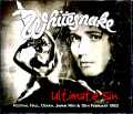 WHITESNAKEが通算三回目の来日を果たした1983年の「SAINTS & SINNERS」ジャパンツアーより、大阪での初日に当たる2月14日のフェスティバルホール公演が、トレーダー間でも一切出回っていない完全初登場のオリジナル・マスター・カセットを用い、WHITESNAKEファン驚愕の超高音質オーディエンス録音・完全CDで音盤化! さらに本作へは翌日 15日に同会場で行われた2日目のライヴも、貴重な映像と極上音源をハイブリッドしたDVDでセット! 大興奮のライヴを最高の音で楽しめる14日と、貴重な映像でステージを見届けられる15日のパッケージ。過去最高・最良の形で甦る大阪公演2Days、すべてのWHITESNAKEファンに衝撃のダイナマイトタイトルです!2月7日から10公演が行われたWHITESNAKEの'83年ジャパンツアーでは、東京・日本武道館公演におけるアイテムが定番として知られていま す。22日のライヴはコージー・パウエル所蔵のサウンドボード音源を用いた「BUDOKAN 1983 MONITOR MIX」が存在し、翌23日からは極上のオーディエンス・ソースをダイレクト使用した「ARMED FORCES」がリリースされており、マニアの間ではどちらも決定的なアイテムとして位置づけられています。しかし'83年ジャパンツアーにおいては、全10回のライヴ中、4回も集中した大阪公演こそが本来メイン。当然ながら優秀なオーディエンス録音は多く存在してきたものの、圧倒的な 存在感を誇る「BUDOKAN 1983 MONITOR MIX」を前にしては、さすがにライヴの印象も影が薄くなってしまったようです。しかし今回新たに発掘された14日の音源は、その印象を覆して、大阪公演への注目を再び取り戻すに違いありません! 現在のデジタル録音並みに見通しクリアでオンなサウンド、30年近い時間を経ながらも劣化をほとんど感じさせない抜群のマスター・コンディションは文句なしの素晴らしさ。大阪公演からもようやく武道館公演へ伍するアイテムが登場した事に、喜びを覚えないWHITESNAKEファンなどいないでしょう!ディスク1・2へ収録された14日の特徴は、上記した通りWHITESNAKEの'83年ライヴすべてを見回しても最高のオーディエンス録音だと断言できるそのサウンドに尽きます。開演前のイントロから会場を包む拍手が最高の明度と臨場感で聴き手を驚かし、オープニングの「Walking In The Shadow Of The Blues」でノックアウトするでしょう。主役カヴァデールのヴォーカルが明瞭なのは当然として、コリン・ホッジキンソンのベースなど、メンバー各人の演 奏が一音単位で克明に聴き取れる分離感とクリアネス、リアルな奥行きを伴う立体感溢れる音像など、あのDIOの「DRAGON HEAD」(Shades)を思い出させるサウンドは驚異的。入力が強くても歪みや割れも起きないサウンドも理想的で、いずれの点でも同年最高と断じて差し支えないスーパー・オーディエンス録音です!テーパーの機材や位置による都合から、カヴァデールのヴォーカルがやや右チャンネルよりではありますが、スネアやタムへの軽妙でストレートなアタック に、ハイハットやシンバルなど金物まで切れ味鋭いコージーのドラムは「Rough An' Ready」のイントロから最高の聴き応え。「Ready An' Willing」ではふくよかで上質な滑らかさすら覚えるジョン・ロードのオルガン、ミッキー・ムーディのブルース・フィーリングに満ちたギターが、聴き 手に素晴らしいサウンドを楽しませてくれるでしょう。さらにバンド全員で突進するような「Don't Break My Heart Again」、力強いメッセージを温かな音色で訴える「Here I Go Again」、ミッキーとコリンのコンビネーションが絶妙な「Lovehunter」と、連発されるWHITESNAKEクラシックの数々は、バンド前期 の集大成です。ディスク2の幕開け「Crying In The Rain」は、イントロに繰り広げられるメル・ギャレーのソロから圧巻というほかなく、カヴァデールの歌唱も渾身という表現がピッタリの凄まじさ。音のダイレクト感もここがピークで、ライン音源すら後ずさるようなダイナミック・サウンドはため息が出そうなくらいに圧倒的です! このサウンドのまま突入する コージーのドラムソロは「この音で聴ければ平凡なライン・ソースは不要」と言えるほど。荘厳な「633 Squadron」におなじみの「1812 Overture」をプラスした構成は彼のキャリア中でも一番派手なソロ。会場を揺るがすラストのスネアとバスドラの連打は、すべてのコージー・ファンの胸を打ち抜くでしょう(ソロ終了後、カヴァデールがコージーの名前をコールした後、彼のソロアルバム「OCTOPUSS」を宣伝しているのも必聴)。文字通りどんなファンをも黙らせる最高のド迫力!カヴァデールが「バレンタインデーのための特別な曲だ」とMCし、ムードたっぷりに奏でられる「(Ain't No Love) In The Heart Of The City」は、ヴォーカル・ギター・ドラムなど、すべてのパートが素晴らしい音質(特にドラムは頭ひとつ抜けて優秀)で、曲の感動をいや増して高めます。 大興奮の「Fool For Your Loving」、アンコールを楽しくにぎやかに盛り上げる「Wine, Women An' Song」! 「We Wish You Well」でライヴが