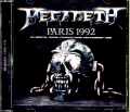 『COUNTDOWN TO EXTINCTION』を全米2位に送り込み、一大全盛を築いた1992年のMEGADETH。絶頂の現場を極上体験できる超強力ライヴアルバムが登場です。そんな本作に吹き込まれているのは「1992年9月22日パリ公演」。その極上オーディエンス録音です。“COUNTDOWN TO EXTINCTION Tour”と言えば一大全盛であると同時に、途中でドラッグ禍の再発で活動停止に陥ってシーンの超大物へ登り詰めるチャンスを棒に振ってしまった事でも思い出深い。まずは、そんな当時のスケジュールからショウのポジションを確かめてみましょう。1992年・5月22日-7月14日:ウォームアップ(4公演)《7月14日『COUNTDOWN TO EXTINCTION』発売》・9月12日-10月27日:欧州#1(34公演)←★ココ★・10月31日-12月31日:北米#1a(36公演)←※LIVE AT COW PALACE 1993年・1月3日-2月12日:北米#1b(19公演) ー活動停止ー×4月30日-5月10日:日本(7公演:中止!) ー活動再開ー・6月3日-22日:欧州#2(7公演)・6月26日-7月19日:北米#2(12公演)これが1992年/1993年のMEGADETH。本作のパリ公演は序盤も序盤。「欧州#1」の7公演目にあたるコンサートでした。ここでピンと来た方は熱心なコレクター。そう、1992年のフランスと言えば、当店では『MULHOUSE 1992』が定番となっておりますが、本作はその2日後。まさに次のステージだったのです。そんなショウを真空パックした本作は、まさに極上のオーディエンス……と言いますか、そこら辺のFM放送も裸足で逃げ出す超ビビッド&クリア・サウンド。実のところ、録音自体は以前から出回っていたのですが、本作は最近になって発掘されたアップグレード・マスター。ハッキリしたジェネは明らかにされていないものの、従来マスターが1stジェネでしたので本作は大元か、別系等の1stジェネではないかと思われます。開演時から従来より長く収録されていることからアップグレード・マスターなのは明らかですが、それは単なる証拠に過ぎない。その真価は極太・ド密着な強力サウンド! 鋭いリフはギャリギャリとうねりを上げるほど鮮明で、ベースもヴォーカルもタイムラグなしで耳にねじ込まれ、距離感が完全皆無。オーディエンスらしさが表れやすいスネアの音色にも空間感覚ゼロで「コレ本当にこれがオーディエンス!?」と疑問が頭の中をグルグル回る凄まじさです。先ほど『MULHOUSE 1992』を引き合いに出しましたが、ショウは直近でもサウンドはまったく比較にならない。もし「これが大元」の確証さえあれば、永久保存プレス化されたであろう超絶のサウンドなのです。そんなド級ダイレクト・サウンドで描かれるのは、一大全盛の旨み全開なフルショウ。先ほども述べたように本作はツアーが本格始動して7公演目。身体が連日のショウや新曲にも馴染み、いよいよフル運転が始まったタイミング。もちろん、その後に運命を変えてしまうドラック癖の再発も起こっておらず、ピークのバンド・ポテンシャルが最高潮に達しているのです。しかも、ヘヴィメタルの真髄に迫った大名盤『COUNTDOWN TO EXTINCTION』の新曲も盛りだくさん。このツアーの頂点と言えば、20周年盤『COUNTDOWN TO EXTINCTION』で公式化された『LIVE AT COW PALACE』ですが、本作は似て非なるセット。ここで比較しながら整理してみましょう。ラスト・イン・ピース(4曲)・Holy Wars... The Punishment Due/Hangar 18/Lucretia/Tornado Of Souls 破滅へのカウントダウン(7曲)・Skin O' My Teeth/Foreclosure Of A Dream/Sweating Bullets/High Speed Dirt(★)/Countdown To Extinction/Ashes In Your Mouth/Symphony Of Destruction その他(6曲)・キリング・イズ・マイ・ビジネス:Mechanix(★)・ピース・セルズ:Peace Sells/Wake Up Dead・ソー・ファー・ソー・グッド:In My Darkest Hour/Anarchy In Paris・その他:Go To Hell(★)※注:「★」印は公式『LIVE AT COW PALACE』でも聴けない曲。……と、このようになっています。ここに至るまでの全アルバムが名盤ですので、その粋となるセットが悪かろうハズがない。『COUNTDOWN TO EXTINCTION』ナンバーはどれも有名なようでいて、7曲もの大盤振る舞いは当時なればこそ。「Foreclosure Of A Dream」「Countdown To Extinction」といったところは後のツアーではあまりやらず意外と貴重ですし、「High Speed Dirt」は姉妹作『MULHOUSE 1992』でも聴けないお宝です。そして、さらなる新曲「Go To Hell」。映画『ビルとテッドの地獄旅行』に提供したナンバーですが、MEGADETH全史でも指折り数えるほどしか演奏していない激レア曲。そのすべてを極上サウンドでたっぷりと味わえるのです。激走メタルから新時代ヘヴィメタルの発明へ。当時、幾多のスラッシュバンドが挑んだ道でしたが、それを成功させたのは『BLACK ALBUM』と『COUNTDOWN TO EXTINCTION』だけだったのではないでしょうか。本作から吹き出すのは、そんな偉業を成し遂げたバンド・ポテンシャルがステージ・テンションで爆上げされたライヴなのです。METALLICAの絶頂ツアーは大量のサウンドボードが残されましたが、MEGADETHはそうもいかなかった。その歯がゆさを癒してくれる極上のフル・ライヴアルバム。「1992年9月22日パリ公演」の極上オーディエンス録音。録