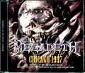ヘヴィメタル暗黒時代に快作『CRYPTIC WRITINGS』を送り出した1997年のMEGADETH。その極上サウンドボード・アルバムが登場です。そんな本作に記録されているのは「1997年8月8日シカゴ公演」。そのステレオ・サウンドボード録音です。“CRYPTIC WRITINGS Tour”と言えば、二度の来日公演が実現するほどの人気絶頂時代でありつつ、同時にニック・メンザの離脱で黄金ラインナップが崩れてしまった時期でもありました。それだけに、ライヴ日程は細かい時期が非常に重要。『DEFINITIVE BUENOS AIRES 1995+1997』や『ROCHESTER 1998』といった名作群がお馴染みでもありますので、まずは当時のスケジュールからそれぞれのポジションを確かめておきましょう。1997年・6月10日+13日:北米#1(2公演)《6月17日『CRYPTIC WRITINGS』発売》・6月21日-7月13日:欧州#1(14公演)・7月24日-9月17日:北米#2(40公演)←★本作★・9月29日-10月31日:欧州#2(24公演)・11月14日-30日:日本#1(11公演)・12月5日-31日:南米#1/北米#3a(14公演)←※DEFINITIVE BUENOS AIRES 1998年・1月2日-29日:北米#3b(18公演)・2月23日-4月21日:北米#4(34公演)←※ROCHESTER 1998・5月9日-6月9日:北米#5a(9公演)《6月10日:メンザ離脱→デグラッソ代役参加》・6月10日-7月7日:北米#5b(22公演)《7月8日:ジミー・デグラッソ正式加入》・7月8日-8月15日:北米#5c(24公演)・9月17日-10月4日:南米#2(9公演)←※CRYPTIC MONSTERS・11月14日-23日:韓国/日本#2(7公演)・12月30日+31日:フェニックス(2公演)これが1997年/1998年のMEGADETH。ニックの離脱は1998年6月の出来事でしたが、本作のシカゴ公演はその約1年前。まだ“黄金の4人(Wデイヴ/マーティ/ニック)”がしっかりと揃った「北米#2」の12公演目にあたるコンサートでした。このショウはFM放送された事でも知られ、古くからそのエアチェックが“CRYPTIC WRITINGS Tour”の代表作とされてきました。本作は同じFMサウンドボードでありつつ、その最高峰となるもの。何しろ、本作の元になっているのはエアチェックではなく、その大元。“WESTWOOD ONE”の放送原盤CDなのです。1997年には放送原盤もアナログLPからCDに移行しており、本作はその現物からロスレスで復刻したものなのです。そのクオリティは、まさに「完全オフィシャル級」。MEGADETHコンプリターからも最高評価を得ているのです。実のところ、マーティ/ニック時代で最高評価されているのは公式サウンドボード2本と超名盤『DEFINITIVE BUENOS AIRES 1995+1997』、それに本作のプレFMマスターの計5本だけ(厳密に言いますとアンプラグド物なら他にもありますが)。いかに本作のサウンドが超極上なのかがご理解頂けると思います。しかも、本作は原音にあった「Trust」のノイズも補整されたパーフェクト版。まさにMEGADETH史に残る大傑作なのです。それだけの傑作でありつつ、なぜShadesレーベルなのか。そこにも理由があります。既発を体験された方ならピンと来ると思いますが、実はこの放送はミックスが少々独特でして、特にツイン・ギターの片方がやや引っ込み気味。別に聞こえないほどではないのですが、アンバランスなのは否めないのです。そんな「惜しい!」極上サウンドボードで描かれるのは、最高傑作『DEFINITIVE BUENOS AIRES 1995+1997』とも異なるフルショウ。ここで比較しながらセットを整理しておきましょう。80年代(3曲)・ピース・セルズ:Wake Up Dead/Peace Sells・ソー・ファー・ソー・グッド:In My Darkest Hour 90年代(11曲)・ラスト・イン・ピース:Holy Wars... The Punishment Due/Hangar 18