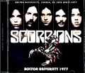 ・6月24日ー7月1日:西ドイツ#1(4公演)・8月7日ー9月26日:西ドイツ#2(16公演)《10月9日『VIRGIN KILLER』発売》・10月2日ー12月4日:欧州#2(25公演)1977年・1月5日ー30日:西ドイツ#3(16公演)・2月19日ー5月5日:欧州#3(24公演)←★ココ★《5月:ルディ・レナーズ→ハーマン・ラレベル交代》《6月ー10月『TAKEN BY FORCE』制作》・10月14日ー11月2日:西ドイツ#4(18公演)《12月4日『TAKEN BY FORCE』発売》・12月10日ー17日:フランス(3公演) これが1976年/1977年のSCORPIONS。ご覧の通り、ショウはすべてヨーロッパ。それもそのはず、彼らが初渡米を果たすのはマティアス・ヤプス加入後の1979年になってから。1978年の初来日までヨーロッパ以外でライヴを行った事がなかったのです。上記の場合、多国間をまたぐ日程は「欧州」としており、本作は「欧州#3」の20公演目にあたるコンサートでした。そんなショウで記録された本作は、生々しさ全開のリアル・サウンドボード。とにかく極太・ゼロ距離の芯が脳みそに直接流し込まれる強烈なダイレクト感が絶大なのです。だからと言って公式ライヴアルバム風ではなく、ミックスは荒々しく思いっきり生感覚。もちろん、それもサウンドボード・マニアにとっては美点でして、公式ライヴ盤やメジャー放送物では味わえない生演奏とのシンクロ感を味わえるのです。また、本作はこうしたレア・サウンドボードではスポイルされがちな臨場感も備えている。現場に居合わせた観客達の拍手や喝采も超リアルなのです。あまりにリアルなために「もしかしてサウンドボードではなく、超極上オーディエンス!?」との疑念もよぎるほどなのですが、やはり空間録音にしては演奏音が骨太・肉厚すぎる。伝統的にサウンドボードで知られてきた録音でもありますので、当店でも伝統に従いたいと思います。そんな極太の荒縄サウンドで描かれるのは『TOKYO TAPES』とも異なる“VIRGIN KILLER Tour”のフルショウ。ここでオフィシャル名盤と比較しながらセットを整理しておきましょう イン・トランス(4曲)・In Trance/Top Of The Bill/Dark Lady/Robot Man ヴァージン・キラー(4曲)・Pictured Life/Back Stage Queen/Polar Nights/Catch Your Train(★)その他(5曲)・フライ・トゥ・ザ・レインボウ:They Need A Million(★)/Fly To The Rainbow・その他:All Night Long/Hound Dog/Long Tall Sally ※注:「★」印は『TOKYO TAPES』で聴けなかった曲。……と、このようになっています。初期SCORPIONS屈指の名曲ながら『TOKYO TAPES』では聴けなかった「Catch Your Train」や「They Need A Million」が聴けるだけで感無量……なのですが、それ以上なのがショウ全体を貫くウリ時代のパフォーマンスでしょう。『TOKYO TAPES』はもちろん無論、歴史的な大名盤ですが、本作はさらにド密着で超生々しい。クラブの最前席で手を伸ばせばクラウスに触れるんじゃないかと思うほどの間近感。その密室に轟くウリ・ロート節のカルト感と言ったら! 初期SCORPIONSは賛辞として「B級感」と評されたりもしますが、本作はそのニュアンスを煮詰めてに煮詰めて、黒光りするタールのように粘っこく濃厚にぶちまけられるのです。ワールドワイドなスケール感なんて皆無。綺麗事なんぞヌキ。ハードロック未開の地であった西ドイツからねじ曲がったセンスと根性で這い上がってきたコアなライヴバンドの底力が全開のライヴアルバムです。後年のSCORPIONSとも、ウリのソロとも違う漆黒ハードロックの極地。「1977年4月30日ボルトン大学公演」のサウンドボード録音。とにかく極太・ゼロ距離の芯が脳みそに直接流し込まれる強烈なダイレクト感が絶大です。ミックスは荒々しく思いっきり生感覚dえすが、それもマニア的には美点で公式ライヴ盤では味わえない生演奏とのシンクロ感を味わえます。『TOKYO TAPES』では聴けない「Catch Your Train」や「They Need A Million」も含め、カルト的な魅力満点だった初期SCORPIONSを目の前感覚で楽しめます。Bolton University, London, UK 30th April 1977 SBD (79:06)