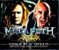 スラッシュメタル両巨頭の初来日から30周年だった2017年。アニバーサリー・イヤーのカップリング来日を永久保存した超・極上ライヴアルバムがリリース決定です。そんな本作に刻まれているのは「2017年5月17日Zepp大阪ベイサイド公演」。その超絶級オーディエンス録音です。もう5年前になるわけですが、この来日公演は極めてメモリアルでした。ANTHRAXが初来日を果たしたのは1987年3月で、MEGADETHはその翌月。それからちょうど30年、“本物のスラッシュメタル”を日本に届けてくれた両雄がカップリングツアーを行ったのですから。特にヘッドラインのMEGADETHは、このところフェス来日ばかり。オマケの単独公演もなくはなかったものの、堂々の主役ツアーは2007年の“UNITED ABOMNATIONS JAPAN TOUR”以来、10年ぶり。そして、現在に至るまで最後の来日公演でもあるのです。まずは、そんな記念碑的な来日スケジュールから振り返ってみましょう。・5月17日:Zepp Osaka Bayside ←★本作★・5月18日:Zepp DiverCity Tokyo・5月19日:Zepp DiverCity Tokyo【強力サウンドのスーパー・ライヴアルバム】以上、全3公演。本作の大阪公演は初日にあたるショウでした。そんな本作の最大のポイントは、30周年の感慨……ではありません。それさえも吹っ飛ぶ凄まじいクオリティ! 何しろ、本作をモノにしたのは当代きっての名録音家“西日本最強テーパー”氏。その彼のコレクションでも特上の逸品なのです。現場となった“Zepp Osaka Bayside”は、ライヴの3ヶ月前に誕生したばかりの新会場だったのですが、“最強”氏はすでに攻略済み。現在は銘打ての録音家の方々もまだ音響を把握し切れていないというのに、スティーヴン・タイラーの超傑作『OSAKA 2017』で「まるでサウンドボード」「現場より良い音」を実現してしまったのです。本作もまた、“最強”氏しか知らない必勝の方程式が炸裂しているのです。実際、本作のサウンドは迷いなく「まるでサウンドボード」の言葉を捧げられるもの。冒頭、ANTHRAXの開演を告げる「Can't Turn You Loose(映画『BLUES BROTHERS』でお馴染み)」からしてウルトラ・クリア。それこそ、サウンドボードどころか公式ライヴアルバム級のサウンドが一気に広がるのです。すべての楽音が強烈なのですが、特に素晴らしいのはシンバルとヴォーカル。鋭いシンバルの残響ゼロっぷりは、本当にドラムにマイクをセッティングしたんじゃないかと思うほど。そして、精緻なギターとベースがリフの壁を作る中、それをぶち破るヴォーカルも超鮮明です。さらにオフィシャル風なのが大歓声。クリアな「Can't Turn You Loose」に「うぉー!」の大声援が巻き上がるのですが、このバランスが本当にオフィシャル盤かのよう。1人の声が飛び抜けるようなことなく、群衆ならではのきめ細やかな喝采が立ち上る。それをねじ伏せるように轟くスラッシュ・メタル……。このバランスは“最強”氏の入念な機材選びとセッティングの賜ですが、さらに加えてポジションの力も大きい。今回はほぼ満員の大盛況だったそうですが、2階席の最前席をご友人たちとキープ。1階席からサーファーも大暴れする大熱狂が湯気のように立ち上りつつ、間近にはオーディエンス・ノイズが皆無なのです。そして、2階最前だからこそ真っ直ぐに遮蔽物ゼロの楽音が飛び込み、距離感は機材セッティングで相殺。現場を体験された方からは「結構ダンゴだった」とうかがっているのですが、本作のサウンドからはそうは思えない。まさに「現場より良い音」というヤツなのでしょう……。その凄味がさらに炸裂するのがヘッドラインのMEGADETH。ANTHRAXも凄まじいサウンドでしたが、MEGADETHはさらにグイッとクリア。ANTHRAXのリフが“壁”だったのに対し、MEGADETHは1音1音が弾丸となって連射される感覚です。念のために申し上げておきますが、ANTHRAXのサウンドが劣っているわけではありません。この違いは現場PAによるものでして、言わば「バンドが出すサウンドの個性」。それを忠実、克明に描ききっているのです。【ベスト選曲ANTHRAX vs 大復活MEGADETH】そんなサウンドで描かれる両雄の素晴らしい事……。まず、ANTHRAXは、豪華極まるグレイテスト・ヒッツ。しかも、その大代表曲の猛ラッシュを演奏っぷりに揺るぎなし。とにかくリズムが凄い。凄すぎる! 要のチャーリー・ベナンテは巧者・カリスマひしめくスラッシュ・ドラマー界でも未だに随一ですし、スコット・イアンもフランク・ベロも然り。単に速いのではなく、単に正確なのでもなく、単にパワー押しでもない。グルーヴ感がたっぷりとまぶされ、それが柔軟に変化してドライヴ感にもなっていく。この自在にして鉄壁のリズム・モンスターぶりは、(音楽はかけ離れていますが)AC/DCクラスでしょう。そんなベスト選曲のANTHRAXに対し、ヘッドラインのMEGADETHは再び返り咲いた黄金期の輝きが眩しい。もちろん、MEGADETHも『PEACE SELLS… BUT WHO’S BUYING』から『CRIPTIC WRITINGS』までの大代表曲を満遍なく並べていますが、それと同時に最