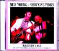 何とびっくりニール・ヤング&ショッキング・ピンクスのライブ音源がリリース!ニール迷走のゲフィン時代の中でも黒歴史(苦笑)とされるショッキング・ピンクス。テクノにカントリーとレコード会社の思惑どおりにアルバムをリリースしてくれないニールに業を煮やしたゲフィンが「ロックンロールのレコードを作れ」と命じたところ「ほらよ」と差し出したのがロカビリー・アルバム「EVERYBODY'S ROCKIN'」。当然レコード会社だけでなくファンをも当惑させる結果となったのですが、同アルバムを引っ提げてアメリカ・ツアーを敢行すると事態は好転。さすがはロカビリーの国だけのことはありショッキング・ピンクスのステージは人気を博し、ツアーは三か月にも渡って行われたのでした。とはいえこのツアーからリリースされたオフィシャルのライブビデオ「SOLO TRANS」を見れば解るように、大半はニールがズラリと並ぶ名曲を歌い上げる弾き語りステージがメインとなっており、ショッキング・ピンクスのロカビリー・ショーが始まるのはライブ後半。その分かりやすい内容もまた好評を博し、ツアーがアルバムをはるかに上回る成功を収めた要員となったのです。確かに従来のニールのイメージ通りである弾き語りステージからロカビリー・ショーへと豹変する構成はビジュアル的なインパクトが大きく、だからこそ「SOLO TRANS」という映像作品が作られたのも当然の事かと。ただでさえ人気のないゲフィン時代におけるライブビデオということでショッキング・ピンクス・ショーは「SOLO TRANS」一択となった感があり、コレクターズ・アイテムが一切存在しません。しかし「SOLO TRANS」はライブ完全収録からは程遠く、ユニークなステージの全貌を垣間見るにはあまりにも物足りない。そこはオーディエンス録音の登場となる訳ですが、1983年という年代の割に、このツアーはスカッと音のいい音源が意外なほど少ない。それは一般的にニールの人気が下降していた時期であり、マニアがショッキング・ピンクスまで追い切れなかったという現実を反映しています。それもまたアイテムがリリースされなかった原因だったのですが、今回用意しました9月21日のマディソン公演はそうした中でも非常に良好なオーディエンス録音として残された一日。程よい距離感とクリアーな音質はショッキング・ピンクスという時期でなければ(笑)とうの昔にアイテムがリリースされていたのでは?と思えるほど。おまけにピッチもアジャストしてより聞きやすくなりました。こうして聞いてみると実際のステージは7割がニールの弾き語りとなっていて、なおかつ名曲連発なセットリストであったことから大いに盛り上がっていることが解る。さらに驚かされるのは、ライブが後半に差しかかったところで開始されるショッキング・ピンクス・ショーでの盛り上がり。なるほど弾き語りステージから一転してピンク・スーツをまとったバンドメンバーが登場してのロカビリーは抜群に面白く、問題作「EVERYBODY'S ROCKIN'」の中でもニールらしい佳曲として話題になった「Payola Blues」などは合唱が起きるほどウケている。マニアでもめったに話題に上がることのないショッキング・ピンクスのステージが実はとっても楽しいライブを繰り広げていたということが解る上質オーディエンス・アルバムです。ニールの黒歴史たるロカビリー・ショーを収めた世界初(笑)の画期的なアイテムとなる伝説のショッキング・ピンクス・ショーを(文字通り!)Dane County Veterans Memorial Coliseum, Madison, WI, USA 21st September 1983 PERFECT SOUND Disc 1 (46:01) 1. Comes A Time 2. Love Is A Rose 3. Down By The River 4. Too Far Gone 5. Only Love Can Break Your Heart 6. Old Ways 7. Old Man 8. The Needle And The Damage Done 9. Helpless 10. Dance, Dance, Dance 11. Heart Of Gold Disc 2 (74:28) 1. Sail Away 2. Don't Be Denied 3. Powderfinger 4. Ohio 5. After The Gold Rush 6. I Got A Problem 7. My My, Hey Hey (Out Of The Blue) 8. Mr. Soul 9. Sugar Mountain THE SHOCKING PINKS SET 10. Jellyroll Man 11. Wonderin' 12. Payola Blues 13. Get Gone 14. Don't Take Your Love Away From Me 15. Everybody's Rockin' 16. Do You Wanna Dance? Neil Young - vocals, guitar, keyboards, harmonica, vocoder Ben Keith - guitar, alto saxophone Larry Byron - piano, trumpet, vocals Anthony Crawford - guitar, vocals Rick Palombi - vocals Craig Hayes - baritone saxophone Tim Drummond - bass Karl T. Himmel - drums Larry Cragg - drums, banjo,pedal steel guitar Pegi Young - vocals Inez Bongiorn - vocals Connie Simmons - vocals Rosemary Lovell - vocals