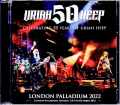 新型コロナ・パンデミックを乗り越え、50周年ツアーに乗り出したURIAH HEEP。その現場を伝えるオリジナル録音が到着です。そんな本作に吹き込まれているのは「2022年10月5日ロンドン公演」。その極上オーディエンス録音です。また、本作はパンデミック後URIAH HEEPの第一報レポートでもあります。良い機会ですので、ちょっと広めに活動再開からの歩みを俯瞰してみましょう 2021年・7月25日ー8月28日:欧州#1(6公演)2022年・1月28日+29日:英国(2公演)・6月4日ー8月20日:欧州#2(17公演)“50th Anniversary Tour”・9月9日ー10月18日:欧州#3(24公演)←★ココ★・11月14日ー12月15日:欧州#4(25公演)2023年・4月4日ー26日:ロシア(14公演) これが現在までに公表されている2021年ー2023年のスケジュール。昨年夏からライヴ活動を再開させ、2022年から本格的なツアーも開始。特に秋口の「欧州#3」からが“50th Anniversary Tour”になります。更に驚きなのは、来年4月。大規模なロシア・ツアーも予定されており、本当にできるのか、(いろいろな意味で)やって大丈夫なのか心配になります。ともあれ、そんな中で本作のロンドン公演は50周年ツアーの開始直後。「欧州#3」の14公演目にあたるコンサートでもありました。そんな現場を真空パックした本作は「極上」を画に描いたような名録音。録音家本人か譲られた本作だけのオリジナル録音なのですが、その録音家こそ当店では“英国の巨匠”でお馴染みの伝説的な名手。新型コロナ・パンデミックが発生してからしばらくご無沙汰でしたが、80年代からずっと英国シーンを記録し続けてきた達人であり、本作は久々の新作なのです。そして、そのサウンドはまさに匠の業物。いかにサウンドボードに近づけるかではなく、「リアルな臨場感と現代的なクリアさの両立」を追究するタイプの録音家で、日本で喩えるならキニーにも通じる。本作はその美学が貫かれており、クリスタル・クリアな空気感のド真ん中を骨太な芯がレーザー光線のように真っ直ぐ突き進む。ホール鳴りも吸い込んだ音色ではあるものの、それがディテールを曇らせるどころか、むしろキラキラとしたエッジの輝きさえ生み出しているのです。しかも、その輝きがどんなアンサンブルにも対応するから凄い。実は、URIAH HEEPの50周年ツアーはショウ前半がアコースティック、後半がエレクトリックという二部構成なのですが、本作は園両方が極めて美しい。アコースティックではシンプルな響きが気品ある“ロンドン・パレイディアム劇場”の空間を満たし、エレクトリックではグイグイと迫ってくるド迫力を活写している。出音がまったく違うにも関わらず、双方で安定して美しく、しかも不思議な統一感も滲ませている。あらゆる会場、あらゆるミュージシャンを記録し続けてきた巨匠だからこその成し得た匠の美録音なのです。そんな美音の世界で描かれるのは、半世紀の間に生み出されてきた名曲コレクション。ここではアコースティック/エレクトリックをまとめて整理してみましょう。バイロン時代(15曲+α)・悪魔と魔法使い:メドレー(The Wizard/Paradise/Circle of Hands:★)/Traveller in Time/Rainbow Demon/Easy Livin'・魔の饗宴:Tales(★)/Rain(★)/Sunrise/Sweet Lorraine・その他(アコースティック):Come Away Melinda(★)/Lady In Black(★)/Circus(★)/Confession(★)・その他(エレクトリック):Gypsy/July Morning/Stealin’ その後(7曲)・ロートン時代:Free Me(★)/The Hanging Tree/Free 'n' Easy・ゴールビー時代:Too Scared To Run・ショウ時代:Against The Odds/Between Two Worlds/What Kind of God ※注:「★」印は第一部アコースティック・セットで演奏された曲。……と、このようになっています。いつにも増してカラフル。『悪魔と魔法使い』『魔の饗宴』の2作は厚めですが、それ以外のアルバムは1ー2曲だけでメチャクチャ幅広い。特に多彩なのは前半のアコースティック・セット。いきなり『スイート・フリーダム』の「Circus」からスタートしますし、その後も「Tales」「Come Away Melinda」「Confession」とレア曲が連発。「あれ? この曲どのアルバムだっけ?」と脳が追いつかないくらいです。エレクトリックに移るとグッと定番曲も増えるのですが、今度は時代の飛び幅が凄い。90年代の名曲「Against The Odds」で始まったと思えば、ジョン・ロートン時代の「The Hanging Tree」に飛び、今度は「Traveller in Time」で一気にバイロン時代に戻り、『ソニック・オリガミ』の「Between Two Worlds」で再び90年代へ。その後もピート・ゴールビー時代の「Too Scared To Run」や近年の「What Kind of God」等々、常に良い曲を書き続けてきた50年の重みを見せつけるようなライヴなのです。半世紀の間に生み出して来た多彩な名曲を、多彩なアンサンブルと匠の美音でフル体験できる新名盤です。LED ZEPPELINは元よりBLACK SABBATHもすでに亡く、DEEP PURPLEからもスティーヴ・モーズが去った。そんな2022年にあって、もっとも現役感たっぷりに50周年を祝うことが出来たのはURIAH HEEPでした。栄光に輝く英国ロックの50年。「2022年10月5日ロンドン公演」の極上オーディエンス録