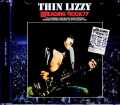 英国を代表する“レディング・フェス”で黄金時代の絶頂を迎えた1977年のTHIN LIZZY。その伝説の現場を伝える極上マスターが新発掘。「GRAF ZEPPELIN」の細密マスタリングで登場です。その伝説ステージが実現したのは「1977年8月27日」。本作は、その現場を真空パックした極上オーディエンス録音です。1977年と言えば、ゲイリー・ムーアとブライアン・ロバートソンの交代もあり、わずかな日付の違いで意味が大きく異なる時期でもありました。まずは、活動全景を振り返ってショウのポジションを確認してみましょう。1977年《前年11月23日:ロボ負傷→ゲイリー参加》*1月3日:ロンドン公演*1月18日ー3月18日 北米#1(37公演)←※SEATTLE 1977《6月『悪名』完成/7月20日ロボ復帰発表》・8月6日ー9月4日:欧州#1(12公演)←★ココ★・9月21日ー11月5日:北米#2(32公演)←※PHILADELPHIA 1977・11月11日ー12月17日:英国#1(28公演)1978年・3月29日:ロンドン公演 ←※映像版L&D・5月15日-26日:欧州#2(5公演)《6月2日『LIVE AND DANGEROUS(アルバム版)』発売》・6月13日ー23日:英国#2(8公演)・7月6日:イビサ公演《ロボ正式脱退/ゲイリー再加入/ナウシーフ参加》*8月8日ー10月15日:北米#3(42公演)*10月20日ー29日:豪州(5公演)←※公式シドニー映像*12月17日:ロンドン公演(ダウニー復帰)※注:「・」印はロボが、「*」印はゲイリーが参加したショウ。これが1977年/1978年のTHIN LIZZY。1976年末にロボが喧嘩で負傷して離脱。1977年春先まではゲイリーが代役を務めたわけですが、『BAD REPUTATION』製作を境にロボが復帰。本作の“レディング・フェス”出演は、そんなロボ復帰の直後にあたる「欧州#1」の8公演目。本稿に目を留められた方なら『LIVE AND DANGEROUS』の元ネタであるサウンドボード・アルバム『DEFINITIVE PHILADELPHIA 1977』もご存知と思いますが、本作はその約2ヶ月前でもあります。1977年の“レディング・フェス”は6月26日ー28日の3日間で開催され、THIN LIZZYは中日のトリとして出演しました。そんな歴史的なステージは名録音が残された事でも知られるのですが、本作はその最新にして最高峰更新盤。ごく最近になって発掘された2ndジェネ・カセットからダイレクトにデジタル化された銘品なのです。実際、そのサウンドは過去最高。従来でも野外フェスらしい反響ゼロのクリアさが際立っていましたが、本作は更に明度が上がっているのです。その威力は冒頭からして明らか。1曲目「Soldier Of Fortune」は穏やかなキーボードとギターが鳴る中でフィルのヴォーカルが入ってきますが、従来マスターはコード音に歌声が埋没気味でもありました。ところが、今回の新マスターはヴォーカルがくっきりと浮き立ち、歌詞の一語一語までしっかり聴き取れる。しかも、これはリマスター効果ではない。シンプルにマスター鮮度が良く、微細部までキレイに残されているからこそ輪郭もくっきりと画かれている。その結果として取り立ててイコライジングするまでもなくメロディが鮮やかに浮かび上がっているのです。そして、バンドが入ってくるとさらに鮮烈。ツイン・ハーモニーはギター1本1本の鳴りが綺麗に描かれ、ボディの共鳴まで感じ取れそうなほど美しい。乱舞するハーモニーを支え、割って入るようなベースもくっきりとしたアタック音がゴリゴリと轟き、それが数珠のように連なってグルーヴを生み出しつつ、1音1音が決して混じり合ったりしない。音色的にオーディンスに間違いはないものの、聴き応えは極上級のサウンドボードと何ら変わらないのです。そんなサウンドボード裸足の超クリア・サウンドで画かれるのは、英国の伝統フェスを制覇した王者のステージ。フェス用セットだけに通常フルセットよりは短いのですが、約65分の持ち時間に黄金時代の必殺曲を濃縮。ここで、その濃厚ぶりもチェックしておきましょう、脱獄(5曲)・Jailbreak/Warriors/Cowboy Song/The Boys Are Back In Town/Emerald その他(7曲)・悪名:Soldier Of Fortune(★)/Dancing In The Moonlight/Bad Reputation(★)・その他:Still In Love With You/Massacre(*)/Don't Believe A Word(*)/Baby Drives Me Crazy ※注:「★」印は『LIVE AND DANGEROUS』で、「*」印は『DEFINITIVE BOSTON 1977』で聴けなかった曲。……と、このようになっています。1977年の最高傑作オーディンス録音と言えば、名盤『DEFINITIVE BOSTON 1977』が君臨しておりますが、本作はそこでは聴けない「Massacre」「Don't Believe A Word」も体験できる。そして何より、有名フェスに臨む熱気が素晴らしい。当時のライヴ・レポートでも3日間で一番の大絶賛を集めたようですが、それが誇張ではないのがよく分かる。乗りに乗ったフィルの歌声は叫ばなくても力強く、張りも艶っ艶。どこをどう聴いてもつぶやくように歌っているはずなのに、不思議とよく通って詩情が胸にじんわりと染み渡るのです。大名盤『LIVE AND DANGEROUS』を引き合いに挙げるまでもなく、人気面でも音楽面でも大全盛にあった1977年のTHIN LIZZY。本作は、その絶頂となるハイライト・フェスをサウンドボード裸足の極上クオリティで現場体験できるライヴアルバムです