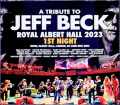 豪華共演だけでなく、滲み出す深い敬愛が胸を打つジェフ・ベック追悼公演。その初日を極上体験できるビッグ・セットが登場です。そんな本作に記録されているのは、もちろん「2023年5月22日ロイヤル・アルバート・ホール公演」。その絶品通し録音をDISC 1-3に、絶景映像をDISC 4に配したオーディエンス・セット4枚組です。本稿に目を留められた方ならご存知と思いますが、このショウは既に2枚組DVDの映像作品としてレポート済みですが、本作はまったく別の録音&映像セットです。まずメインとなるのは、3枚組のフルライヴ・アルバム。第一報の映像作『Uxbridge 1934』は1曲1曲で異なる映像を組合わせた編集作品だったためにクオリティは高かったものの、「通しのフル体験」感には欠けていました。本作は、その体験感を味わわせてくれる通し録音なのです。もちろん、サウンド・クオリティも絶品。何よりも素晴らしいのは、名会場“ロイヤル・アルバート・ホール”だからこその艶やかで上品な鳴り。まろやかできめ細かく、そでいてリッチ。ギターにもヴォーカルにも、まるでビロードのような美しさを宿らせているのです。もちろん鳴りの厚みでボケボケ・ボワボワになったら元も子もありませんが、本作にその心配はない。太くて密度の高い芯に突進力があり、リッチな空気感のド真ん中を貫いて演奏の機微まで運んでくれる。しかも、本作はネット原音から細心マスタリング。美しい鳴りの旨みはそのままに、ヌケをグッと向上させたことでまるで録音ポジションが数列前方に移動したかのような錯覚まであるのです。そして、やっぱり美味しいのがじっくりと落ち着いて味わうフル録音の統一感。ジェフ縁のミュージシャン達が次から次へと登場するカラフルなステージでも腰を落ち着けて聴き込むことができるのです。ここで、その豪華ぶりも振り返っておきましょう。DISC 1:クラプトン&ブラムホールII(8曲)・参加ゲスト:デレク・トラックス/スーザン・テデスキ/ロン・ウッド ショウは三部構成になっており、本作は各パートをディスク1枚ずつに収録しています。DISC 1は、主催エリック・クラプトンによる8曲。レギュラー・バンドをバックにお馴染みのドイル・ブラムホールIIも全面参加。この基本編成で冒頭4曲を演奏し、そこにデレク・トラックスも加わってさらに4曲を披露。デレク参加後はさらにゲストも増えていき、奥方スーザンやロン・ウッドも登場します。DISC 2:ベック・バンド&ゲスト(9曲)・参加ゲスト:オリヴィア・セイフ&ロバート・ランドロフ/ジョニー・デップ&ビリー・ギボンズ/カーク・ハメット/イメルダ・メイ/ロン・ウッド/デレク・トラックス/ジョン・マクラフリン 第二部は生前最後のJEFF BECK GROUP(ロンダ・スミス/アニカ・ニルス/ロバート・スティーヴンソン)を基軸にしたセクション。オリヴィア・セイフ&ロバート・ランドロフによる「Elegy For Dunkirk」でスタートし、その後ジョニー・デップ&ビリー・ギボンズが登場。この2人を軸にしてカーク・ハメットなど、様々なスター達が入れ替わり登場します。DISC 3:クラプトン&ゲスト(9曲)・参加ゲスト:ロバート・ランドロフ/ジョス・ストーン/ゲイリー・クラークJr./ロッド・スチュワート/ロン・ウッド 最後の第三部は再びエリック・クラプトンと彼のバンドが主軸。ゲストはさらに豪華になり、再登場のロバート・ランドロフ(2曲)、ロン・ウッド(2曲)の他、ゲイリー・クラークJr.とロッド・スチュワートが4曲ずつ参加しています。ハイライトは何と言ってもロッド。クラプトンやロンをバックにジェフ縁のレパートリーを歌ってくれるのです。本作は、そんな豪華ステージを目撃できる絶景映像もセット。初日映像は前述の2枚組『Uxbridge 1934』の他、ギフト盤『1ST NIGHT: SINGLE CAM EDITION』もご紹介してきましたが、本作はそのどちらとも異なる映像です。3時間超えのショウを約40分にダイジェストしているのですが、その見応えは特濃。まず、スゴい絶景。ステージ左側のバルコニー席からミュージシャン音図上から見下ろすアングル。客席の角度も急なために前方客の影も入り込まずにステージ全体を見渡せ、豪華メンバーがアイコンタクトを交わしながら演奏していく姿がつぶさに見て取れます(ステージ袖で出番を待つゲストまで見えちゃいます)。その光景のまま、1曲を数十秒ずつで見せていく。切り替わるごとにゲスト達が入れ替わっていくのですから、一瞬たりとも気が抜けず、ハイライトの連続。濃厚な40分間を味わえるのです。最近ではコスパならぬ「タイパ(タイム・パフォーマンス)」が叫ばれ、動画を早送りする若者もいますが、音楽に早送りは厳禁。このディスクは、早送りで音楽を汚すことなく極度にタイパを追究した現代的な映像作でもあるのです。じっくりと腰を据え、フルショウをじっくりと味わうフル・ライヴアルバム(DISC 1-3)と、絶景席から駆け足にショウをダイジェストする映像篇(DISC 4)。2つの傑作記録で歴史的な現場に
