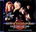 奇才スティーヴ・ヴァイを迎え、唯一無二の異彩を放っている『SLIP OF THE TONGUE』時代。白蛇史の重力特異点を現場体験できる新録音が登場です。そんな本作に吹き込まれているのは「1990年8月25日ドルトムント公演」。その極上オーディエンス録音です。このショウは以前から名録音が残された事でも有名ですが、今回発掘されたのはまったくの別録音。しかも、従来盤を大きく上回るサウンドの衝撃マスターなのです。その気になるクオリティの前に、まずはショウのポジション。異形の天才ギタリストと共に世界を巡った“LIQUOR & POKER World Tour”の活動全景から振り返ってみましょう。1989年《11月7日『SLIP OF THE TONGUE』発売》1990年・2月2日ー3月28日:北米#1(34公演)・4月7日ー7月13日:北米#2(62公演)・8月8日ー9月7日:欧州(15公演)←★ココ★・9月19日ー26日:日本(5公演)《WHITESNAKE活動停止》これがスティーヴ・ヴァイ時代のWHITESNAKE。本作のドルトムント公演は「欧州」レッグの8公演目。この時代を象徴する公式作品『LIVE AT DONINGTON 1990』のちょうど一週間後(3公演後)。POISONやTHE QUIREBOYSを従えて実施された“Super Rock Dortmund”でした。前述のように、その模様は以前からオーディエンス録音が知られ、当店の『THE HEAT BEGINS TO RISE』としても定番化していました。本作はそれとは異なり、ごく最近になって公開された別録音です。しかも、単に別録音なのではなくサウンドも完全に上を行く。『THE HEAT BEGINS TO RISE』も名録音ではありつつ、厚めのホール鳴りがリッチ感を漂わせるタイプでしたが、本作は超クリア。透き通る空気感のド真ん中をレーザー光線のようにくっきりした芯が貫き、輪郭もキリッと引き締まっている。ヴァイの細かいノートも一音残らず克明で、ギターに隠れていたシンセも鮮明。『THE HEAT BEGINS TO RISE』では知り得なかったディテールがはっきりと味わえるのです。それだけのサウンドなのも、実は当然。今回発掘されたのは、今話題の名手「Stephane」コレクションの大元マスターなのです。「Stephane」氏は80年代末/90年代初頭のHR/HM系録音を連発している人物で、IRON MAIDENの名盤『DEFINITIVE PARIS 1993』を筆頭に『PARIS 1988 1ST NIGHT』、SCORPIONSの『PARIS 1990』、MOTLEY CRUE『PARIS 1989』等々、新名盤/話題作を大量に発表している。本作は、そんな名手による「ヴァイ白蛇篇」なのです。そんな達人サウンドで描かれるのは、他のどの時代とも異なるメカニカルで異次元的なWHITESNAKE。セットは一週間前の公式『LIVE AT DONINGTON 1990』と同一ではありますが、良い機会ですのでここで整理しておきましょう。 スリップ・オブ・ザ・タング・Slip Of The Tongue(★)/Judgement Day/Kittens Got Claws(★)/Cheap An' Nasty(★)/Fool For Your Loving クラシックス(8曲+α)・サーペンス・アルバス:Is This Love/Crying In The Rain/Here I Go Again/Bad Boys (incl. Children Of The Night)/Still Of The Night・その他:Slide It In/Slow An' Easy/Ain't No Love In The Heart Of The City ※注:「★」印はこのツアーだけの限定曲。この他、ギタリストのソロ・タイムとしてエイドリアンの「Adagio For Strato」「Flying Dutchman Boogie」、ヴァイ「For The Love Of God」「The Audience Is Listening」も演奏されています。こうしたソロ曲だけでなく、『SLIP OF THE TONGUE』のタイトル曲や「Kittens Got Claws」「Cheap An' Nasty」もこのツアーでしか演奏していない。ヴァイの妙技だけでなく、セット的にも他ツアーとはかなりイメージの異なるフルショウなのです。「WHITESNAKEらしくない」「ヴァイにブルースは弾けない」と散々叩かれまくったのも今は昔。現在では、その違和感が一周して唯一無二の個性として昇華。「聴きやすい普通曲に乗るヴァイ節」が広く珍重されてさえいます。本作は、そんな『SLIP OF THE TONGUE』時代を達人サウンドで現場体験できるフル・ライヴアルバムです。もし当時公開されていたら永久保存プレスCD化で各社から一斉リリースされていたであろう名録音。「1990年8月25日ドルトムント公演」の極上オーディエンス録音。最近発掘された名手「Stephane」氏の大元マスター起こしで、既発とは完全に別物なクリア・サウンド。スティーヴ・ヴァイの妙技だけでなく、「Slip Of The Tongue」「Kittens Got Claws」「Cheap An' Nasty」といった限定曲も美味しいフルショウを現場体験できる新名盤です。Westfalenhalle, Dortmund, Germany 25th August 1990 TRULY PERFECT SOUND(*NEW SOURCE) Disc 1 (50:16) 1. Intro 2. Slip Of The Tongue 3. Slide It In 4. Judgement Day 5. Slow An' Easy 6. Kittens Got Claws 7. Adagio For Strato 8. Flying Dutchman Boogie 9. Is This Love 10. Cheap An' Nasty Disc 2 (62:22) 1. Crying In The Rain 2. Drum Solo 3. Crying In The Rain (Reprise) 4. Fool For Your Loving 5. Guitar Solo / For The Love Of God 6. The Audience Is Listening 7. Here I Go Again 8. Bad Boys (incl. Children Of The Night) 9. Ain't No Love In The Heart Of The City 10. Still Of The Night 11. We Wish You Well
