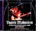 歴代No.1の超絶シンガー:マーク・ボールズと初来日を果たした1996年のイングヴェイ・マルムスティーン。その現場を伝える初登場オリジナル録音が新発掘。そんな本作に刻まれているのは「1996年11月6日:中野サンプラザ公演」。“INSPIRATION Japan Tour”の一幕で記録された極上オーディエンス録音です。このツアーは名録音の豊作地帯でもあり、当店でも様々な名作でアーカイヴしてきました。まずは、そのコレクションを日程で整理しつつ、本作のポジションも確かめてみましょう。・11月2日『NAGOYA 1996』・11月4日『INSPIRATION JAPAN TOUR 1996(大阪)』*11月5日『TOKYO 1996 1ST NIGHT(新宿)』*11月6日:中野サンプラザ ←★本作★*11月7日『TOKYO 1996 FINAL NIGHT(中野)』※注:「*」印はCD化が実現したショウ。以上の全5公演すべてがオリジナル録音によるライヴアルバムになっているわけですが、特に強力なのが『TOKYO 1996 1ST NIGHT』『TOKYO 1996 FINAL NIGHT』。本作は、その間を繋ぎ、「東京三部作」を完成させる最後の1本でもあるのです。熱心なコレクター諸兄ならピンと来ていると思いますが、このショウは『TOKYO 1996 2ND NIGHT』としてもレポート済み。本作は、あの名録音の出し直し。。。では、ありません。まったく別人による別録音。今回、初めて世に出る完全新作ライヴアルバムなのです。そして、そのサウンドは同日既発とは比較にならない。今聴いても『TOKYO 1996 2ND NIGHT』も十分に素晴らしいのですが、本作は数段オンでダイレクト。ヘッドフォンで聴いてもホール鳴り成分がほとんど感じられず、輪郭もくっきりハッキリ。いわゆる「まるでサウンドボード」タイプなのです。そんなサウンドを名盤と比較するなら、前日『TOKYO 1996 1ST NIGHT』が一番近いかも知れません。しかし、サウンドは酷似しているとしても、ショウ自体は本作の方が上回っている。その意味をご理解頂くためにも、ここで名盤『TOKYO 1996 1ST NIGHT』と比較してみましょう。オリジナル・ヴォーカル曲:Liar/Queen In Love/I'll See The Light Tonight/You Don't Remember, I'll Never Forget(★)/Rising Force(★)・インスト:Far Beyond The Sun/Black Star カバー・リッチー・ブラックモア曲:Child In Time/Pictures Of Home/Gates of Babylon・ジミ・ヘンドリックス曲:Red House(*)/Manic Depression(* ・その他:The Sails of Charon(SCORPIONS)/In the Dead of Night(U.K.)/Carry On Wayward Son(KANSAS)※注:「*」印はイングヴェイがメインで歌う曲。「★」印は『TOKYO 1996 1ST NIGHT』で聴けない曲。……と、このようになっています。前日演奏されたインストの「Icarus' Dream Suite Op.4」が落ちた一方、本作では「You Don't Remember, I'll Never Forget」と「Rising Force」が盛り込まれました。このツアーの目玉はマークの歌声ですから、ヴォーカル曲は多ければ多いほど良いわけで、実際その素晴らしさは格別。「Rising Force」はよりクラシカルで格調高く甦っていますし、「You Don't Remember, I'll Never Forget」にしても1999年/2001年の再来日では演奏してくれなかった名曲中の名曲。もちろん、“INSPIRATION Japan Tour”の核であるカバー群を歌い上げるマークも絶品です。“ALCHEMY Tour”・“WAR TO END ALL WARS Tour”でもマークとの来日が実現しましたが、その際はアルバムの新曲がメイン。それも悪くは無かったものの、やはり「マークが歌うクラシックス」の醍醐味は1996年に尽きます。そんな記念碑ツアーを永久保存する名盤がまた1つ誕生したのです。最終日の超名盤『TOKYO 1996 FINAL NIGHT』と最高傑作の座を競い合っていくであろう衝撃の新発掘マスター。「1996年11月6日:中野サンプラザ公演」の極上オーディエンス録音。既発とは異なる新発掘のオリジナル録音で、そのサウンドは数段オンでダイレクト。ヘッドフォンで聴いてもホール鳴り成分がほとんど感じられず、輪郭もくっきりハッキリ。いわゆる「まるでサウンドボード」な名録音で、数々の名曲カバーや「You Don't Remember, I'll Never Forget」「Rising Force」を熱唱するマーク・ボールズも美味しいフルショウを楽しめる新名盤です。Nakano Sunplaza, Tokyo, Japan 6th November 1996 ULTIMATE SOUND(from Original Masters) Disc:1 (62:41) 1. Intro. 2. Liar 3. The Sails Of Charon 4. Queen In Love 5. In The Dead Of Night 6. Child In Time 7. Pictures Of Home 8. Keyboard Solo 9. Adagio 10. Far Beyond The Sun / Guitar Solo 11. Red House Disc:2 (59:44) 1. Badinerie / Guitar Solo 2. You Don't Remember, I'll Never Forget 3. Drum Solo 4. Manic Depression 5. Band Introductions 6. Gates Of Babylon 7. I'll See The Light Tonight 8. Acoustic Guitar Solo 9. Black Star 10. Carry On Wayward Son 11. Rising Force Yngwie Malmsteen - Guitar Mark Boals - Vocals Mats Olausson - Keyboards Barry Dunaway - Bass Tommy Aldridge - Drums