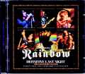 「伝説の夜」から、ちょうど47年!!日本洋楽史の伝説でもあるRAINBOWの初来日。その象徴公演を伝える伝説録音がまさかのアップグレード。マスター・カセットから新たにトランスファーされた究極盤が2CDで登場です!そんな本作に刻まれているのは「1976年12月16日:日本武道館(夜の部)」。その最高傑作たる伝説オーディエンス録音です。やたら「伝説」を繰り返してしまいましたが、本作に至っては致し方ない。ショウも、録音も、演奏自体も、本当に「伝説」。何しろ、本作の正体はコレクター史に名高い名盤中の大名盤『DEFINITIVE LAST NIGHT』のアップグレード盤。その大元カセットを最新機材でデジタル化し、「GRAF ZEPPELIN」の細密マスタリングで仕上げた究極ライヴアルバムなのです。伝説盤『DEFINITIVE LAST NIGHT』をご存知の方ならすでに心を決めていらっしゃると思いますが、そうではない方のためにもイチからご説明しましょう。まず「ショウ」が伝説。RAINBOWの初来日は全公演が伝説級ですが、中でも最も有名な大名演が最終公演「12月16日(夜の部)」。このショウは公式『ON STAGE』の一部としても採用されただけでなく、公式デラックス・エディション(大阪とクレジットされていますが、正しくは日本武道館)やコージー・テープなど何種ものサウンドボードも発掘。無数の既発群によって「初来日と言えば、最終公演」とイメージされる象徴ライヴとなりました。ただし、そうしたサウンドボードはいずれも不完全版。通しのフル体験はオーディエンス録音に頼らざるを得ませんでした。ここで次なる伝説が「録音」。このショウは初来日随一ともなる名録音の宝庫でもあり、膨大な数の記録が噴出。ここでは挙げきれないほどの既発群が生まれたわけですが、そんな中で「ベスト録音」の王座に君臨してきたのがBondageレーベルの『DEFINITIVE LAST NIGHT』。つまり、初来日随一の激戦区で優勝した最強録音なのです。本作はそんな伝説録音の復刻盤なのですが、単なる既発コピーではない。Bondageレーベルから大元マスター・カセットを借り受け、「GRAF ZEPPELIN」がトランスファー&マスタリングで仕上げた最高峰更新盤なのです。そのサウンドは、まさに究極。『DEFINITIVE LAST NIGHT』ではわずかに感じられた高周波ノイズもほとんどなく、ピッチも位相もより厳密に補正されている(ステレオ感が微っ妙ーに右寄り感じられるかも知れませんが、これこそが録音そのものの真実です)。さらに重要なのが、シームレスな完全収録。カセット録音はテープチェンジ等のカットが宿命なわけですが、本作ではそうしたパートを別録音で補填。全部で3種の録音をフル活用し、フルショウを再現しているのです。ここで、使用された3録音を整理しておきましょう。 A:メイン『DEFINITIVE LAST NIGHT』録音 このショウのベストとして知られる伝説のステレオ録音で、大元カセットから復刻。B:補填用『AN EVENING IN DECEMBER』録音 ミラクルマンによる当店オリジナル録音で、モノラルながら『DEFINITIVE LAST NIGHT』と双璧と謳われた極上サウンド。C:補填用『BUDOKAN 1976 FINAL NIGHT』録音 近年登場した当店発掘のモノラル録音。史上最長の録音時間がポイント。……と、このようになっています。伝説の「A」を最大限に使用しつつ、欠けパートを「B」でパッチ。両音源でどうしても足りない部分を「C」で補完したわけです。実のところ、「C」最後の会場外への退場するシーンは省略している(音楽作品としての聴了感を重視しました)ので過去最長ではありませんが、ショウ自体は1秒たりとも欠けのない完全ライヴアルバムなのです。最後の「演奏」の伝説ぶりは、本稿に目を留められた方なら数々のサウンドボードや名録音で重々ご存知のことでしょう。「レインボーのMADE IN JAPAN」とまで言われた名演中の大名演です。究極のライヴ、究極の録音クオリティ、究極のジェネと仕上げ……ありとあらゆるポイントを極め尽くしたライヴアルバムの極めつけです。まさに「初来日の絶対盤」。「1976年12月16日:日本武道館(夜の部)」の最高傑作オーディエンス録音。伝説盤『DEFINITIVE LAST NIGHT』の大元カセットから最新トランスファーし、「GRAF ZEPPELIN」の細密マスタリングで仕上げた究極ライヴアルバム。テープチェンジの欠けもミラクルマンの準優勝盤『AN EVENING IN DECEMBER』等で補完し、究極のショウを究極サウンドで完全体験できる「RAINBOW初来日の絶対盤」です。(リマスター・メモ)★マスターカセットを最新デジタルトランスファー! リマスターのうえ欠落部を緻密に補填(Bondage盤の繋ぎはザックリとしたものでした)し、伝説のライブを完全収録!若干左側に位相が偏っていたが、今回盤は位相ズレなし。ただし右側の歓声が終始大きめのバランスのため、若干右側寄りに聞こえますが、こういう録音と判断ピッチ1%ほど高かったほか、16kHz付近に大きな高周波ノイズが乗っている。今回の再新トランスファーは再生機材が異なるうえ、高周波ノイズは乗ってません。Budokan, Tokyo, Japan 16th