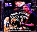 2014年ヨーロッパツアーから7月12日のハイドパーク公演を完全収録。しかもトレーダーに一切出回っていない独自のオーディエンス録音を今回入手してのリリース。もちろん音質は極上で、ニール・ヤングのギターと彼のボーカルが特にオンな状態の音像を誇ります。2012年から足掛け三年となるクレイジー・ホースとのツアーですが、今回は開始直前になってベースのビリー・タルボットが脳卒中を起こしたことからあわやツアー中止かと心配されました。しかし幸いにもビリーの脳卒中は軽度であることが発表され、さらに代打として1988年のブルーノーツからニールのバンドに何度も参加しているベーシストのリック・ロサスを加えて予定通りのツアーが行われています。そのような土壇場の変更が起きたにも関わらず、ニールとクレイジー・ホースが聴かせる演奏のアッパーな様子には本当に驚くばかり。ツアー自体が三年続いているということが大きいと思われますが、それにしても一曲目の「Love And Only Love」から盤石な演奏が壮絶なのです。久々に演奏された「Goin' Home」は懐かしのフジ・ロックフェスティバル伝説のステージを思い出させますし、まるで「Don’t Cry No Tears」にそっくりなイントロが始まったので、これもフジロック再現?的な予感からニールが歌い始めたのは「After The Gold Rush」まさかのギター・バンド・バージョン。何ですかこれは?的な演奏に観客もびっくり仰天している様子が伝わってきますが、そんな形にアレンジしてみせても意外としっくりきているからさすがです前半のこんな面白い演奏だけでも楽しめること請け合いですが、長く激しい「Love To Burn」に次いで演奏されたのは1974年ごろの未発表曲と言われる「Separate Ways」。マニアの方でしたらば1993年ツアーでの演奏を覚えている方も多いかと思いますが、このツアーにおいて再びレパートリーに復活して話題を呼んでいます。ところがこの日を含むツアー前半だけの演奏で終わってしまいましたので、今回のリリースにおけるレア・ナンバーと言えるでしょう。一方で静かな曲、あるいはアコースティックな曲を演奏するコーナーは昨年や一昨年のツアーと比べて大増量。しかも「Only Love Can Break Your Heart」に「Heart Of Gold」という文句なしの選曲に加え、以前から演奏しているボブ・ディラン「Blowin’ In The Wind」のカバーまで加わっただから本当に魅力的です。この辺りのパートはニールのファンだけでなく、全ロック・ファンにもお勧めしたいほど。とどめはアルバム「ZUMA」からの「Barstool Blues」というさらにレアな選曲。こうした名曲が目白押しの構成によって、まったく中だるみしないセットリストとなっているのです。そしてライブの終盤は「Who's Gonna Stand Up And Save The Earth?」という新曲が演奏されますが、イントロの雰囲気はまるでレッチリの曲(笑)みたいに始まるのが面白いもの。その異色な曲調は新機軸と言えるかもしれません。しかし最後はビリーの回復を祈る意味でクレイジー・ホースのテーマ曲と言っても過言ではない「Down By The River」を演奏するという感動的なエンディングとなっています。ここ二年間のクレイジー・ホースとのツアーと比べてもさらに魅力を増したセットリスト、それ以上に全編を通して非常にテンションの高い演奏を極上音質にて封じ込めました。Live at Hyde Park, London, UK 12th July 2014 TRULY PERFECT SOUND(from Original Masters) Disc 1(63:53) 1. Love And Only Love 2. Going Home 3. Days That Used To Be 4. After The Goldrush 5. Love To Burn 6. Separate Ways 7. Only Love Can Break Your Heart Disc 2(63:17) 1. Blowin' In the Wind 2. Heart Of Gold 3. Barstool Blues 4. Psychedelic Pill 5. Cinnamon Girl 6. Rockin' In The Free World 7. Who's Gonna Stand Up And Save The Earth 8. Down By The River Neil Young - Vocals, Guitar, Harmonica Frank Sampedro - Guitar, Vocals Ralph Molina - Drums, Vocals Rick Rosas - Bass Dorene Carter - Vocals YaDonna West - Vocals