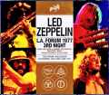 長年に渡って続いてきたミラードマスターの公開も主だったところは発掘されたようで(もちろん「アレはまだなの?」という名録音もあるのですが)JEMSによると一旦ピリオドを打つに相応しい音源としてレッド・ツェッペリン1977年6月23日のLAフォーラムのミラードマスターが公開されています。もっともこれを書いている週末には公開の場を変えて驚きのガンズ89年録音が公開されましたね。まだまだ続いてくれるようです。話は戻りまして今回の77年LAフォーラムはいわずもがな『バッジホルダー』の日。昨年の大発掘であり究極のベストセラー『FOR BADGE HOLDERS ONLY : JON WIZARDO MASTER CASSETTES : COMPLETE EDITION』によってLPマスターが簡単に楽しめるようになった現在ではありますが、それと比肩しうるレベルで圧倒的な高音質ぶりを見せつけてくれているのがミラード版ならでは。惜しむらくはミラードがこの日に限ってライブ序盤の録音に失敗し「Since I've Been Loving You」からの収録となったこと。さらに録音を始めたら始めたで同曲や「No Quarter」までの間に音飛びが頻発してしまったことは本録音の持病と言え、これは2015年『LOS ANGELES 1977 3RD NIGHT』リリース時から変わりません。中でも致命的なのがライブ序盤の欠損ですが、これに関してJEMSは何とミラードの友人でもあったバリー・ゴールドスタインによる独自の録音を発掘。77年6月23日はクオリティ的にウィザード録音とミラード録音の二つがステレオ収録を含めて抜きん出ており、これまで出回っていた別録音はそれらと比べてがっくり音質が落ちる感が否めず、あくまで補填要員の域を出るものではありませんでした。そこは新発掘のゴールドスタイン録音、この日のモノラル・オーディエンスの中では他と比較にならない聞きやすさ。結果としてJEMSは今回の公開に際しライブ全体をミラード関連の音源でまとめることができたのです。おまけに友人ゴールドスタイン録音の方はライブ最初の45分のみの収録で終わってしまったとのことですので、文字通り両者のいいとこどりをする形での公開にも。そして問題の「Since I've Been Loving You」以降に散見される音飛びですが、今回のリリースに際して主にウィザード音源をパッチすることで問題を解決。2015年版リリースの際にもあえてそのままとしていた問題も今回は解決され、これまでになく落ち着いて聞きこめる状態でのリリースにもなったのです。例によって今回もJEMSはフラット・トランスファーと「dadgad」リマスターの2バージョンを用意してくれたのですが、今週の限定プレスCDリリースの栄誉を授かったのはリマスター・バージョン。既に「dadgad」はゴールドスタインの衝撃的な発掘であった『L.A. FORUM 1977 2ND NIGHT: BARRY GOLDSTEIN MASTER TAPES』において大きな成果を上げてくれていたのも記憶に新しいところですが、今回もまた見事な仕上がり。まずライブ前半のゴールドスタイン・パートに関しては『L.A. FORUM 1977 2ND NIGHT』の時と同様にモノラル・オーディエンスが陥りがちな暗めの音質を改善、見晴らしを良くすることでミラード録音との格差を緩和。やはり「dadgad」とゴールドスタイン録音の相性は抜群。そしてミラード録音の方も今回いざマスターが発掘されてみればカセットに劣化の症状がみられるという現実が明るみに。それは「Stairway to Heaven」以降に顕著で、劣化したが故に音がこもってしまっている。この問題に関しても「dadgad」は見事に取り組んでくれており、元の状態と比べてもはるかに聞きやすくしてくれている。むしろこれこそが今回「dadgad」バージョンをプレスCDに採用する最大の要因ですし、それこそ一聴して解ってもらえるかと。こうしたレストアパート以外においても「dadgad」リマスターの成果は実に素晴らしいものがあります。元々この日の録音はミラード一連の77年LAフォーラムの中でもジミーのギターをド迫力の音像で捉えてくれており、それが「dadgad」の手腕によってさらに生々しく聞こえるようになっている。おかげで「Ten Years Gone」などは77年の中でも屈指の名ライブバージョンとなったことを実感させられますし、さらに「No Quarter」もまた名演中の名演といえ、リズム隊に拮抗するジミーの冴え渡ったプレイも「dadgad」リマスターのおかげでさらにリアルに感じられるかと。このように今回も「dadgad」リマスターを採用してのリリースと相成った訳ですが、なるほどトータルの仕上がりは流石と言うしかない。何より伝説な『バッジホルダー』の日もう一つの名録音が遂にベストな形でリリース。The Forum, Los Angeles, California, USA 23rd June 1977 TRULY PERFECT SOUND Disc:1 (70:03) 1. Intro 2. The Song Remains the Same 3. Sick Again 4. Nobody's Fault but Mine 5. Over the Hills and Far Away 6. Since I've Been Loving You 7. No Quarter Disc:2 (61:43) 1. MC 2. Ten Years Gone 3. The Battle of Evermore 4. Going to California 5. Black Country Woman 6. Bron-Y-Aur Stomp 7. White Summer/Black Mountain Side 8. Kashmir 9. Trampled Under Foot Disc:3 (64:22) 1. MC 2. Moby Dick 3. Guitar Solo 4. Achilles Last Stand 5. Stairway to Heaven