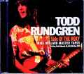 プラットフォームを移してのJEMSによるミラード・マスター発掘シリーズは今回もまた驚きのトッド・ラングレン。ミラードがトッドのステージまで録音していたという事実だけでも世界中のマニアを驚かせるに十分でしょう。おまけに前回のスティーブン・スティルスに続いて今回も会場はハリウッドのロキシー。もちろんトッドの78年ロキシーと言えば定番のラジオ放送や公式の『ALL SIDES OF THE ROXY』がマニアでなくとも浮かぶ訳ですが、今回のJEMSライナーによるとミラードも実際に当時のラジオ放送をエアチェックしていたとのこと。ところが『ALL SIDES~』やラジオが5月23日の収録であったのに対し、ミラードが実際に出向いて録音してくれたのは何と5月20日のショー。これが驚いたことに「セットリストが違う」どころの話ではなく、むしろ「ライブの内容がまるで違う」レベルだからさあ大変。この時期のトッドは名盤『HERMIT OF MINK HOLLOW』の大ヒットを受けて大規模なクラブ周りを敢行。その一環として5月23日の放送が実現した訳ですが、そこではスティービー・ニックスにホール・アンド・オーツ、そしてリック・デリンジャーといった豪華ゲスト込みのイベント仕様なライブ構成でした。そうしてラジオ放送を意識したお祭り騒ぎ的な要素の強い23日を聞きなれたマニアからすると、今回のショーで聞かれるあまりの内容に違いに腰を抜かしてしまうのではないでしょうか。ライブ前半ではこのツアーならではの洗練されたバンドサウンドをバックにトッドがギターを弾きまくる場面も随所でみられるのですが、70年代を通してトッドのバッキングを務めたコーラス・パフォーマンス集団ハロー・ピープルが登場して「Unchained Melody」や「Book of Love」のさわりを歌ったの皮切りにライブはR&Bショーへと豹変。この時期のトッドのソウルやR&B志向のサウンドを象徴する「The Verb "To Love"」や『HERMIT OF MINK HOLLOW』からこれまた大ヒット・シングルとなった「Can We Still Be Friends」といった彼の歌いこむR&Bナンバーが続く構成こそこの時期のトッドらしくて良い…と感じるマニアが少なくないのでは。結果としてこれが同じ会場、なおかつ数日しか違わないライブなの?と疑いたくなるほど内容が違いすぎるのが78年トッドの真骨頂。そして今回のマスター公開に際しJEMSは「この日のミラードはスピーカーから少し離れた所にいたようだが、それでも素晴らしい音質」とコメントを残していますが、確かに音像が遠いというよりはロキシーのようなハコならではのクローズさにあって迫力満点な音質かと。何よりレア音源の発掘そのものが途切れて久しかったトッドの音源界、しかも1970年代ステージの発掘というだけでも世界中のマニアを驚かせるに十分なもの。文字通り「アナザーサイド・オブ・ロキシー」と呼べる衝撃の発掘。そして何と言っても彼ならではのクオリティが今回もいかんなく発揮されている。トッド久々の歴史的発掘ライブ音源はロキシー78で別の日、しかも驚きのミラード録音The Roxy, West Hollywood, CA, USA 20th May 1978 PERFECT SOUND NEW SOURCE, GREAT DISCOVER Disc:1 (60:52) 1. Intro 2. Real Man 3. Sometimes I Don't Know What to Feel 4. Love of the Common Man 5. The Range War 6. Love in Action 7. Never Never Land 8. You Cried Wolf 9. Unchained Melody 10. Book of Love 11. Can We Still Be Friends 12. Bread 13. Don't You Ever Learn? 14. Dust in the Wind 15. The Verb "To Love" Disc:2 (47:13) 1. A Dream Goes on Forever 2. All The Children Sing (Video Track) 3. I'm So Proud 4. Ooo Baby Baby 5. La-La Means I Love You 6. I Saw the Light 7. Eastern Intrigue 8. Initiation 9. Couldn't I Just Tell You 10. Hello It's Me 11. Just One Victory Todd Rundgren - Vocals, Guitar Moogy Klingman - Keyboards/Synthesizers John Siegler - Bass, Backing Vocals Willie Wilcox - Drums, Backing Vocals The Hello People: Bobby Sedita - Guitar, Backing Vocals Larry Tasse - Keyboards, Backing Vocals Greg Geddes - Bass, Backing Vocals Norman Smart - Drums, Backing Vocals