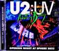 昨年9月から今年3月までラスベガスの新たなコンサート会場Sphereで、1991年のアルバム『Achtung Baby』の記念として計40公演の『U2:UV Achtung Baby Live at Sphere』を終了したU2ですが、そのこけら落としある2023年9月29日の初演がマルチIEM音源完全収録CDで待望の登場!既にこのレジデンシー公演からのIEM音源は4公演がリリースされており、この初日のライヴもオーディエンス録音ではリリースされておりますが、今回マルチIEMと僅かながらオーディエンス録音も加えたレーベル独自のマトリック音源で、薄っすらカウントも聞こえるものの完璧なステレオ・サウンドボード・クオリティの決定盤として満を持してのリリースとなります。何んと言っても記念すべき初日のIEM音源に更にはボーナストラックとして、同年2月27日に行われたボノとエッジにオーケストラを加えてのアコースティック・ライヴ3曲をサウンドボード音源で追加収録しており、最上級の価値を極めたと言えるオススメ必携アイテムです!disc one 01. PRE-SHOW 02. INTRO 03. ZOO STATION 04. THE FLY 05. EVEN BETTER THAN THE REAL THING 06. MYSTERIOUS WAYS 07. ONE 08. UNTIL THE END OF THE WORLD 09. WHO'S GONNA RIDE YOUR WILD HORSES 10. TRYIN' TO THROW YOUR ARMS AROUND THE WORLD 11. ALL I WANT IS YOU 12. DESIRE 13. ANGEL OF HARLEM 14. LOVE RESCUE ME disc two 01. SO CRUEL 02. ACROBAT 03. ULTRAVIOLET (LIGHT MY WAY) 04. LOVE IS BLINDNESS 05. ELEVATION 06. ATOMIC CITY 07. VERTIGO 08. WHERE THE STREETS HAVE NO NAME 09. WITH OR WITHOUT YOU 10. BEAUTIFUL DAY 11. OUTRO Live at Sphere at the Venetian Resort, Las Vegas, Nevada, USA, September 29, 2023 12. VERTIGO 13. S.O.S. 14. ONE Bono & The Edge with the BBC Concert Orchestra :Live at Maida Vale Studios, London, UK, February 27, 2023