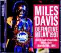 生前最後のツアーとなった1991年ツアーから、その初日となる3月11日のイタリア、ミランのスメラルド劇場における注目のライブを海外マニアがレストア処理を施したアップグレード音源で20数年ぶりのリリースです。1991年ツアーの初日とあってマイルス・デイヴィスが「鬼才」と呼んだデロン・ジョンソンのデビュー・ライブとなります。更に本ライブではプリンスがマイルスのために描き下ろした新曲が4曲の初演となっています。「Penetration」、「R.U. Legal Yet ?」、「Jailbait」、「A Girl And Her Puppy」がそれです。3月13日のドイツ、ギュータースロー公演を収録した「Jailbeit」より1日早い初演ライブ。廃盤となった前作がリリースされてから早20数年が経過しましたが、海外マイルス・マニアによるノイズレス処理、ドロップダウン箇所の修正、更にディエッサー処理により歯擦音を抑え、クリアな音像と実現しました。マイルスの数多いツアーの中でも最重要と言われる最後の1991年ツアーから決定版となるライブをお手元に!!Live At Teatro Smeraldo, Milan, Italy march 11th, 1991 1.Perfect Way 2.Star People 3.Hannibal 4.Human Nature 5.Penetration 6.R.U. Legal Yet ? 7.Jailbait Disc 2 1.Tutu 2.A Girl And Her Puppy 3.Don't Stop Me Now 4.Carnival Time 5.Full Nelson 6.The Senate / Me And You 7.Portia Miles Davis(tpt, synth) Kenny Garrett(as, fl) Deron Johnson(synth) Joe "Foley" McCreary(g) Richard Patterson(b) Ricky Wellman(dr)