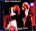 ミック・ラルフスの訃報を機に活気づいているBAD COMPANYの音源アーカイヴ。その最新作となる“RUN WITH THE PACK Tour”の新名盤が登場です。そんな本作に吹き込まれているのは「1976年4月23日シカゴ公演」。その極太オーディエンス録音です。1976年と言えば、幻の公式作『LIVE IN ALBUQUERQUE 1976』も浮かびますが、もちろん本作は別公演。その辺の状況も含め、まずは当時の活動概要から俯瞰してみましょう。・1月2日+3日:ロンドン(2公演)《1月30日『RUN WITH THE PACK』発売》・2月8日ー21日:欧州(8公演)・3月8日ー4月23日:北米#1(33公演)←★ココ★・5月6日ー28日:北米#2(16公演)《7月ー8月『BURNIN' SKY』制作》これが1976年のBAD COMPANY。ヨーロッパでもミニ・ツアーは行いましたが、主軸はあくまで北米。約2週間のオフを挟んでじっくり二周しました。本作のシカゴ公演は前半「北米#1」の一幕だったわけですが、ここは公式『LIVE IN ALBUQUERQUE 1976』や定番『LIVE FOR PROVIDENCE』もひしめく激戦区。さらに日程をフォーカスしてみましょう。「北米#1」の詳細・3月8日+9日(2公演)*3月10日『LIVE IN ALBUQUERQUE 1976(公式)』・3月13日ー4月12日(21公演)*4月13日『LIVE FOR PROVIDENCE』・4月14日ー22日(7公演)*4月23日:シカゴ公演 ←★本作★ このように、本作のシカゴ公演はツアーが一区切りを迎える「北米#1」の最終日でした。そんな現場を真空パックした本作は、極太感たっぷりの貴重録音。あくまでヴィンテージ・オーディエンスではありますが、とにかく力強い芯が強力。スカスカ感などまるでなく、4人一丸となったアンサンブルが距離感なく耳元に迫る。あまりの力強さにピークが歪むこともあるものの、それが耳に痛くならないのは瑞々しい鮮度のおかげ。1stジェネ・マスターからダイレクトにデジタル化されており、ダビング痕も経年劣化もほとんど見られないのです。もちろん、本作はそんなマスターの最高峰更新盤でもある。ネット公開された原音は豪快にピッチが遅くて聴く気になれない状態でしたが、本作はビシッとジャストで安定。さらに帯域分析の上で音域のバランスも調整。貴重な記録に秘められた可能性を最大限に引き出し、音楽作品としての完成度を追求しました。そんな極太ヴィンテージなサウンドで描かれるのは、3大名盤を濃縮したようなフルショウ。公式『LIVE IN ALBUQUERQUE 1976』とも似て非なるセットですので、比較しながら整理してみましょう。ラン・ウィズ・ザ・パック(7曲)・Live For The Music/Simple Man/Young Blood/Sweet Lil' Sister/Silver, Blue & Gold(*)/Run With The Pack/Honey Child その他(8曲)・バッド・カンパニー:Ready For Love/Rock Steady/Can't Get Enough・ストレート・シューター:Good Lovin' Gone Bad/Wild Fire Woman(★)/Feel Like Makin’ Love/Deal With The Preacher/Shooting Star ※注:「★」印は再結成後には演奏していない70年代の限定曲。「*」印は公式『LIVE IN ALBUQUERQUE 1976』や『LIVE FOR PROVIDENCE』で聴けなかった曲。初期にはシングルB面曲やカバーも取り上げられていましたが、1976年まで来るとオリジナル曲も豊富になり、アルバム曲だけで構成。グッと豪華になりました。そんな中でもレアなのが「Sweet Lil' Sister」。2008年に1回だけ演奏しているので「★」印は付いていませんが、実質的にこのツアーだけの限定曲です。次から次へと名曲・名盤を生み出していった70年代中期のBAD COMPANY。そんな名曲群を当時のバンド・ポテンシャルで一大集成した“RUN WITH THE PACK Tour”は、ある意味で最も美味しいツアーだったかも知れません。本作は、充実度に反して記録の少ない時代をフル体験できる貴重なライヴアルバム。「1976年4月23日シカゴ公演」の極太オーディエンス録音。1stジェネ・カセットからデジタル化された銘品で、とにかく芯が力強くスカスカ感などまるでない。4人一丸となったアンサンブルが距離感なく耳元に迫ります。再編後には演奏したことない「Wild Fire Woman」など、初期3作を濃縮したフルショウを現場体験できます。 Chicago Stadium, Chicago, IL, USA 23rd April 1976 PERFECT SOUND Disc:1 (44:33) 1. Live For The Music 2. Good Lovin' Gone Bad 3. Simple Man 4. Young Blood 5. Wild Fire Woman 6. Feel Like Makin' Love 7. Deal With The Preacher 8. Ready For Love Disc:2 (43:16) 1. Sweet Lil' Sister (6:20) 2. Shooting Star (7:24) 3. Silver, Blue & Gold (5:41) 4. Run With The Pack (6:26) 5. Drum Solo / Rock Steady (6:30) 6. Honey Child (4:24) 7. Can't Get Enough (8:15) Paul Rodgers - Vocal Mick Ralphs - Guitar Boz Burrell - Bass Simon Kirke - Drums