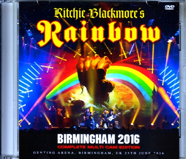 4CD『DEFINITIVE BIRMINGHAM 2016』は、新生RAINBOWのベストショウ「2016年6月25日バーミンガム公演」のベスト・サウンドを更新する頂点盤。最高のショウ、最高のサウンドがそろった超・決定盤には、これまた新生RAINBOW最高の超・決定的な映像作品をお贈りします。これまでもバーミンガム公演のフル映像はありましたが、本作はそれとは違う。海外マニアが数々のオーディエンス・ショットを駆使して創り上げたマルチカメラです。以前、初日ローレライ公演のマルチカメラ作品『LORELEY 2016 VIDEO: COMPLETE』をお届けしたことがありましたが、本作は(恐らく)同じマニアが制作したもの。“マルチカメラ”とは言っても、1曲ごとに別アングルの映像を集めただけのものも出回っていますが、本作は1曲内でも無数のカットを駆使し、それこそ1フレーズでもカットを目まぐるしく切り替える正真正銘のマルチカメラ。使用されたオーディエンス・ショットも数え切れないほどで、右側・左側・正面・接写・見下ろし・遠景と多種多様。その膨大な数のカットをマニアが精査し、一瞬一瞬の見どころまで詳細に組み上げている。例えば、冒頭「Highway Star」では、ロニー・ロメロが「Nobody gonna take my car♪」を繰り返しますが、演奏はステージ全景で、ロメロが歌う瞬間だけロメロのズームと切り替える。逆にラストの「Smoke On The Water」では、観客の壮大なシンガロングに沸く会場の全景に鳥肌が立つ……。まさに、マニアが細やかな神経とセンスと情熱を注ぎに注ぎ尽くした映像作品の大傑作なのです。とにかく、全編が怖ろしいほどに美しい。映像を精査していますから画質も完璧で、ほとんどプロショットのような最新デジタルの超・高画質。さらに演出も美しく、オープニングではハリウッド映画かのようなタイトルCGが踊り、アングルの切り替えもわずかなフェイドや画像演出を施して滑らかに変わるのです。映像が美しければ、音声も美しい。4CDのディスク1・2と同じ録音が使われており(マスタリングは異なります)、極めてクリアなまま一気貫通。もう隅から隅まで、徹底的に美意識で磨き上げられた映像作品なのです。そんな極限的な映像美で描かれるベスト・パフォーマンス“バーミンガム公演”の素晴らしいこと! 何度も書いてきましたが、この日だけの「Soldier Of Fortune」「Burn」を含め、グッと紫色の深くなったショウ。事前のインタビューでは「約70%がRAINBOWの曲、約30%がDEEP PURPLEだ」と語っていましたが、フタを空けてみるとRAINBOWとDEEP PURPLEで約半々。それでもドイツ2公演ではややRAINBOWが多かったものの、この最終バーミンガム公演は「RAINBOW7曲(第九を含む)+DEEP PURPLE8曲」と逆転したコンサートでした。もちろん、そんなバランスよりも演奏そのものこそが素晴らしい。ライヴアルバムでも絶品だった「Soldier Of Fortune」も、映像で観るとその美しさが倍増。切々と歌うロメロと観客たちの唱和が生む空間、繊細なピッキングで紡がれるフレーズ、その弾きっぷりの流れるような美しさ……。他の曲でも3公演目にして、やっと自然にロックを楽しめる余裕が出てきたリッチーの姿があらゆる方向から目撃できるのです。そして、数々の名曲・名シーンの果てに炸裂する「Burn」! イェンス・ヨハンソンがソロでボロボロになると、リッチーが「大丈夫かね……」とのぞき込む光景もマルチカメラでバッチリ押さえられています。オフィシャル映像のリリース予定にも言及されていましたが、どうやらカメラが入っていたのは2日目ビーティッヒハイム=ビッシンゲン公演だけだった模様。だとすると、21世紀の「Burn」はこの映像こそが最高傑作になるのかも知れません(まぁ、公式で出すためには、キーボードソロを大胆に改造しないといけませんが)。ともあれ、マニアが渾身の労力を費やして生み出した“ベスト・ショウ”の“ベスト映像”です。新生RAINBOW3日間でも頂点の映像なのは間違いありませんが、それ以上に“2016年のハードロック映像”全体でもベストなクオリティの1本。全記録のコレクターはもとより、「もう新生RAINBOWはお腹いっぱい」「1本だけで良いからベストを見たい」と言う方にも胸を張って「コレしかありません!」とご紹介できる大傑作。Live at Genting Arena, Birmingham, UK 25th June 2016 (1:55:59)
