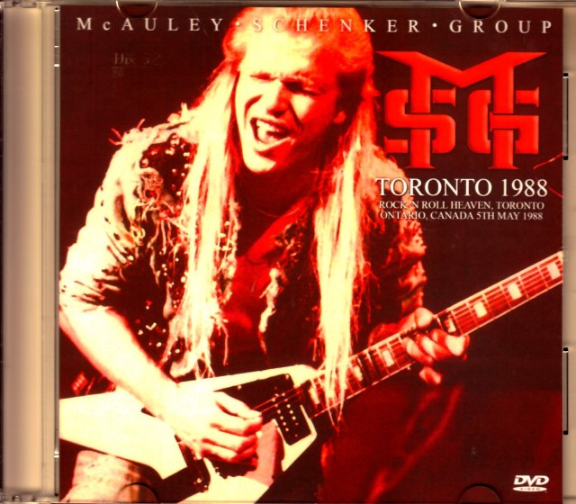 なんと言っても凄いのは、本作は関係者によるプロフェッショナルな撮影ということ。もっとも、いわゆる「プロショット」で思い出されるマルチカメラ放送などとは違い、ステージ正面の客席後方に設置された会場設営のワンカメ。しかし、ズームを多用した映像美は間違いなくプロショットでして、ロビン・マッコーリーやマイケル・シェンカーは当然として、ドラムのボードー・ショホフでさえ、前髪の1本1本まで鮮やかに映し出される。しかも、設営カメラだけに安定感もバツグン。そこまでズームに寄っても瞬間の手ブレさえなく、見どころを追いまくってくれるのです。そんな強烈な映像美にも負けないのが音声。こちらも会場録音のサウンドボードが被せられ、CDでは聴けない「Time」までバッチリ観られる。まさにMcAULEY SCHENKER GROUP最強の映像作品なのです。「そこまで凄いなら、CDより上じゃないか?」と思われるかも知れません。実は、ある意味その通りだったりもするのですが、ただ、あえて難を言うならモノラル気味でややギターが抑えめのバランスが惜しい。他のバンド、ギタリストなら申し分ないレベルとは言え、やはりM.S.G.ですからギブソンのフライングVに堂々と主役を張って欲しい。ただでさえ貴重なMcAULEY SCHENKER GROUPが、プロショットで観られる……もう、その1点に尽きます。ロングのブロンドを後ろに束ね、デニムで身を固めたマイケル。獅子舞のような盛り髪でゆさゆさとヘッドバンギングするロビン。狭いクラブに“1988年”ならではの時代感が猛烈に漂う。他のいかなる時代とも違う2人の姿が極上映像に映し出され、その歌声もギターもサウンドボードで浴びられる大傑作映像なのです。この映像とルックスは変わっていますが、この2人が並び立つ光景がもうすぐ観られる。ポップながらも存分に泣いていたMcAULEY SCHENKER GROUP。28年前に実現した来日公演の史上最高記録であるCDに加え、そのプロショットの極上光景で目撃できる本作。