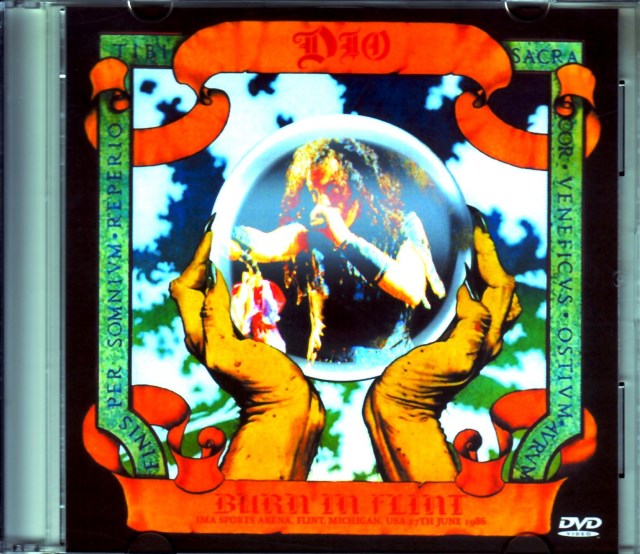 クレイグ・ゴールディ加入後の'86年ツアーは、4月から5月にかけてヨーロッパそしてイギリスをサーキット。3連続公演のハマースミス・オデオン公演に続き、こちらも2公演が行われたアイルランド・ダブリン公演で一旦の区切りを迎えました。そしてDIOは'86年6月6日から、アメリカにおける「SACRED HEART」ツアーの2ndレッグに突入します。同作のツアーは'85年のヴィヴィアン在籍時にも8月から12月にかけて大規模に行っていましたが、この2ndレッグはアメリカにおけるクレイグのお披露目も兼ねており、バンドの熱の入れようは大変なものがありました。その証拠に6月20日にはニューヨークのマジソン・スクウェア・ガーデンで一万三千人を集めるショウを披露するなど、前年に劣らないスケールの会場で精力的なライヴを繰り広げました。 本作はこの充実したツアーの13公演目に当たるミシガン州フリント"IMAスポーツアリーナ"におけるライヴを、80分間にわたり優れたオーディエンス・ショットで捉えています。会場の奥からの撮影ながら、ステージを正面から的確に収めた画面は、舞台におけるロニーやクレイグなどバンドメンバーのプレイをはっきりと確認できる優れたショットです。25年前の映像だけにやや暗めで、最近のデジタル映像のような鮮明さではありませんが、それでもプレイヤーの輪郭は明確で、ズームした場面では表情まできちんとうかがえます。来日公演でも多くの観客にインパクトを与えた神殿のセットに、グリーンとレッドのライトに照らされて巨大なドラゴンが浮かび上がるイントロは、いきなり映像ならではの見どころです。スポットライトで照らされたヴィニー・アピスの激しいドラミング、そしてパイロの炸裂から弾けるようにスタートする「King Of Rock And Roll」は、音源でしか'86年ライヴを知らないファンを驚かせるでしょう! 「Like The Beat Of A Heart」・「Don't Talk To Strangers」という前半の流れはヨーロッパツアーと同じですが、このアメリカツアーでは「Hungry For Heaven」に代えて「Time To Burn」がセットインしているのが大きな特徴です。ポップなテイストは「Hungry For Heaven」に近いものがありますが、クレイグはこれがDIOで作曲に関わった初めてのナンバーとあって、ステージ上でもより活き活きとしたプレイを見せています。「The Last In Line」からのメドレーでは、レーザー光線を用いた「Holy Diver」、照明と炎の舞台装置が明と暗のコントラストを巧みに描く「Heaven And Hell」など、大掛かりなステージには思わず見入ってしまいます。オープニングから映像を駆使した「Sacred Heart」は間違いなく最大の見せ場です。客席を思いのままに扇動するロニーのアクションも最高潮で、歌唱だけでなく全身で楽曲の世界観をアピールするパフォーマンスには圧倒されます。日本では難しい火薬や炎を用いたステージ効果も必見、ロニーが"Attack !!"と叫ぶと同時に咆哮して煙や火を吐くドラゴン(スーパーロック85ではロニー自身が叫んでいました)、光る剣を振るってステージ狭しと躍動するロニーの姿は見逃せません。 この日会場をソールドアウトにした5,000人の観客も、ロニーの強烈なパワーを前にして、熱狂的なリアクションで応えています! クレイグ・ゴールディを迎えたラインナップでの'86年ライヴは、6月17日のフィラデルフィア"スペクトラム"でショウを収録した「SACRED HEART "THE VIDEO"」で観る事ができますが、臨場感溢れる客席からのショットについて言えば、本作に並ぶものはそう多くはありません。音楽はもとより、ショウとしての見どころも多い「SACRED HEART」ツアーは、やはり映像で楽しみたい!ファン必見の80分間です!