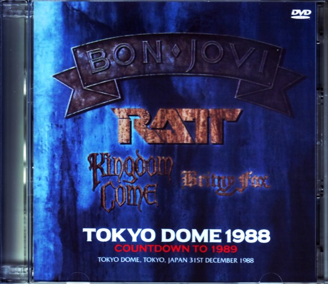 空前のバブル景気とHR/HMブームに沸いていた1988年。誰もが“終わらぬ春”を信じ切って、疑いすら抱かなかった1988年。その最後一夜に実現した巨大イベントの極上プロショットがリリース決定です。そのイベントとは、“HEAT BEAT LIVE '89 IN BIG EGG”。その年に開設されたばかりの東京ドーム……いや、「ビッグエッグ」で行われた大晦日カウントダウン・コンサートです。このコンサートは、当時全盛を極めていたBON JOVIをメインアクトに据え、LAメタルの大御所RATT、新進気鋭のKINGDOM COME、BRITNY FOXが参加したフェスティバル。その模様はテレビ放送され、お茶の間にまでHR/HMを浸透させました。この放送は幾多の既発を生み出してきましたが、本作は近年になって発掘された極上マスターを元にした過去最高版なのです。そのクオリティたるや凄絶なほど素晴らしい。BON JOVIをイメージ・キャラクターに起用していたS電機のテレビCMも収録されているので、恐らくはエアチェックだと思うのですが、超鮮明にして線ノイズも劣化も一切感感じられないクオリティは「オフィシャルDVDか? ミント状態のレーザーディスクか?」といったレベル。実のところ、極々わずかにトラッキングノイズのような音声ノイズが入るのでビデオマスターと判別できるものの、28年の時を超えてきた80年代映像とは信じられないハイパー・クオリティなのです。そんなクオリティで描かれるのは、バンドも観客も“我が世の春”に全身を浸した1989年の匂い。出演バンドがすべて登場しますが、あくまでもバンドの主軸はBON JOVI。当日の全17曲のうち12曲が放送(カットされたのは「Homebound Train」「Pink Flamingos」「Let It Rock」「Get Ready」「Runaway」)され、その合間にBRITNY FOX(1曲)、KINGDOM COME(1曲+ドラムソロ)、RATT(2曲)が挟まる構成。そこに映し出されるBON JOVIの姿は、まさに「Bad Medicine」のPVそのまんま。若々しくも青臭くはなく、かと言って渋さへの色気も見せない。颯爽と全身に大全盛の風を受け、真っ直ぐに迷いのない表情で歌い、弾く“あのBON JOVI”の姿なのです。そんな彼らを見つめ返すビッグエッグの大観衆もまた、1988年の光景。黄色い嬌声を返す女性たちはボディコンに身を包み、ワンレンをたなびかせて身体を揺らす。太い眉が感極まる想いに歪んだかと思えば、その間にはアラレちゃん眼鏡の男性客もあらん限りの声で歌う……。まさに、あの時代、1988年だからこその光景が画面いっぱいに広がるのです。そんなBON JOVIに紛れて放送される他3組も美味しい。当時はLAメタルの大御所だったRATTが2曲だけというのも日本らしいところですが、放送してくれただけでありがたいBRITNY FOXも、一瞬の大全盛に輝くKINGDOM COME(ジェイムズ・コタックのドラムソロよりSTONE FURYの「Break Down The Walls」が見たかったっ!!!)も極上クオリティで味わえるのです。年越しカウントダウンに続き、出演バンド総出のジャム「It's All Over Now」でお祭り騒ぎ。堂々とカンペを見ながら歌うレニー・ウルフ、「ひいとびいとらいぶ’89」と書かれた法被に袖を通したスティーヴン・パーシー。すべてが“あの時代”に包まれ、本作は幕を閉じます。何よりも大全盛期のBON JOVI。そして、それを見つめる日本人の姿、BON JOVIと共に1988年を彩ったバンド達の姿。“1989年の匂い”がモニターから立ち上り、その風がスピーカーから吹き出す大傑作プロショット。