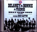 クラプトンがデラニー&ボニーに加入して本格始動した様子を捉えた定番映像として知られる1969年のテレビ出演“BEAT CLUB”。同番組の収録は11月26日にラジオ・ブレーメン・スタジオにて行われ、29日にBEAT CLUB第49回放送プログラムの中で彼らの演奏シーンが最後に流されました。その放送から「Poor Elijah / Tribute to Johnson」一曲が80年代になってオフィシャル・ソフトに収録され、多くのマニアはココでデラニー&ボニー&フレンズの一員としてギタリストに徹するクラプトンの雄姿と、そうそうたる面子で結成されたバンドの姿が見られたことで、思わず釘付けになったのではないでしょうか。その後CDアイテムによって他の演奏曲も音声だけが発掘されたことから都合三曲の放送が判明しましたが、「Poor Elijah」以外の二曲に関してはなかなか映像が登場せず、すべての曲が映像で見られるようになったのは意外なほど最近になってからでした。現在は「BEAT CLUB VOL.2: 1968-1970」にてこれら三曲はもちろん、イエスの「No Opportunity Necessary, No Experience Needed」などと共に第49回放送分が丸ごとソフト化されています。ところが、ここ最近になってYouTube上のBEAT CLUBオフィシャル・アカウントが放送用の編集が施される前のビデオ映像を次々に公開。同番組は放送時にバンド・ロゴやアルバム・カバーをオーバーラップさせる演出を身上としており、1970年以降のカラー放送以降はそれがエスカレート。ディープ・パープルやジェフ・ベック・グループなどはそうした演出が施される前の映像が既に公開されていましたが、まだカラー収録に切り替わる前の白黒放送ですら演出を加える前のビデオが残されていたとは驚き。デラニー&ボニーの映像に関しては今年に入って公開されていたもので、その存在すら知らないマニアも少なくないのでは?。よって編集前の状態で三曲の演奏シーンが見られるのですが、まず「Poor Elijah」と「Where There's a Will, There's a Way」の二曲に関しては、演奏が始められる前、キューが出るスレイトから見られるという、正に編集前ならではの場面から映像が始まっています。よって古くから見慣れた「Poor Elijah」ではオープニングのバンド・ロゴが映し出されません。おまけに「Where There's~」に関してはデラニーがカウントで演奏をスタートさせる様子までしっかり捉えられている。これらの場面からも解るように、デラニーたちの映像は実際のところオーディエンスを前にした撮影ではなく、言うなれば「特別扱い」の収録であったことが解ります。実際の放送分では曲間でオーディエンスを従えたアナウンサーのコメント、さらに演奏が始まると拍手も入りますが、これらはすべて「ヤラセ」であったという(笑)。そして「Where There's~」から間髪入れずに始められていた「Comin' Home」に関しては、実際の放送分においてエンディングロールのバックで流された挙句、一分にも満たない内にフェイドアウトさせられていましたが、ここでは何と演奏がコンプリート!これだけでも世界中のマニアにとっては衝撃の発掘でしょう。しかしクラプトンのギターソロが終わった後で突如として深いエコーが入ってしまう、明らかに放送局側のミスと思われるトラブルが起きていますので、それが原因で演奏序盤のみの放送となった可能性が推測できます。もっともこれは微塵な問題でしかなく、今まで演奏の3分の1しか見られなかった「Comin' Home」がコンプリートで、おまけにエンディングロールのクレジットなしで見られるとは。このように三曲のみの収録ではありますが、もはやプレス・レベルの画質かつ、きわめて貴重な映像は全クラプトン・マニア衝撃のアイテム間違いなし。