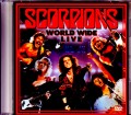 SCORPIONSが世界的バンドへと大きく飛躍する切っ掛けとなった「LOVE AT FIRST STING」当時の1984年ライヴでは、音源版の公式ライヴ「WORLD WIDE LIVE」と同時に、複数のマルチカメタ・プロショット映像も残されています。その代表的なひとつが、日本で開催された"スーパー・ロック '84"におけるライヴ映像でしょう。真夏の昼間、野外のスタジアムで繰り広げられたライヴからは、映像で観ているだけでも当時のSCORPIONSらしい開放的でエネルギッシュな勢いを感じました。そしてもうひとつの代表格が、今回デジタル化されたプロショット素材です。音源版の「WORLD WIDE LIVE」では'84年4月のカリフォルニアにおけるライヴを中心に構成されていましたが、この映像では'84年6月7日のニューヨーク"マディソン・ス クウェア・ガーデン"公演をメインにしつつ、「LOVE AT FIRST STING」ツアーで訪れた日本やヨーロッパなど各地の模様を織り交ぜて構成されています。本作は現在使用できる最上級のVTRマスターからデジタル化したもの。プロフェッショナルなカメラ構図やカット割り,編集はもちろん、映像の鮮度やクリアネスも一級品。リマスターによりサウンドも磨き上げられており、同種の映像タイトルとしては間違いなくトップクラスだと断言できる内容です。クラウス・マイネのMCや曲間でインサートされるショットには日本語字幕も付いており、誰もが安心して映像を楽しめます。昔の映画をモチーフとするユニークなイントロに続き、ライヴ映像はツアー中のオフショットを用いた「Coming Home」からスタート。続く「Blackout」でも、バンドは大観衆を相手にスペクタクルでエキサイティングなライヴを繰り広げていきます! クラウスは素晴らしい歌唱を披露しつつも、ステージ狭しと縦横無尽に駆け巡り、ルドルフ・シェンカーは弟のマイケルとも異なる独特のキャラクターでライヴを熱くする。SCORPIONSを詳しく知らない人でも、本映像を観れば直感的に「'80年代のSCORPIONSがどんなバンドだったか」を理解できるでしょ う。本映像における見所のひとつは、中盤にインサートされた「荒城の月」。同曲と続く「No One Like You」では'85年初頭に行われた来日公演(武道館公演やオフショットなど)でのテイクを用いており、貴重な場面を見られます。その後もメロディアスな「Still Loving You」、パワフルな「Rock You Like A Hurricane」、文字通り爆発するようにクライマックスを盛り上げる「Dynamite」など、'80年代SCORPIONSの姿をたっぷりと楽し めます。エンド・クレジットで用いられる「I'm Leaving You」の後も、本作ではさらに「Big City Nights」の別バージョン映像を追加収録。バンドのユニークな表情とパワフルな演奏シーンを対比するように楽しめます。当時のSCORPIONSがいかにパワフルで勢いがあったのか、音源だけでは伝わりきらない彼らの 魅力をさらに深く味わえるでしょう。