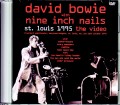 これが“OUTSIDE TOUR”の全体像。この中でカップリングだったのは「北米」レッグのみで、それも最終日以外の全22公演。本作のセントルイス公演は、その12公演目にあたるコンサートでした。このショウは極上サウンドボード録音も残されており、当店の『ST. LOUIS 1995: DAT MASTER』でも大人気。本作は、その映像編となる1枚なのです。ただし、フルショウではありません。このカップリング・ツアーは変わった趣向で知られており、前座のNINとボウイのショウが不可分。最初はNINの単独ショウが行われますが、その終盤でボウイが登場。共演していくうちにNINがステージから去り、ボウイのバンドメンバーが加わっていき、複雑なグラデーションを経てボウイのソロ・ステージと変貌していくのです。Uxbridge盤は前座を務めたPRICKからNIN、ボウイまでフルに聴ける3枚組でしたが、本作はNIN→ボウイと変化していく共演パート(約45分)をフィーチュアしているのです。ここで、その流れをまとめてみましょう。