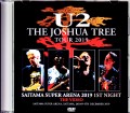 遂に実現した大名盤『THE JOSHUA TREE』完全再現の来日公演。その現場をフル体験できる映像作品がリリース決定です!本作は「2019年12月4日さいたまスーパーアリーナ公演」のオーディエンス・ショットです。今回の来日は同会場の2公演のみ。本作と第二弾『SAITAMA SUPER ARENA 2019 2ND NIGHT: THE VIDEO』はどちらもショウの全曲収録ですので、2作で日本公演のすべてを目撃できるわけです。そんな本作はマニアが製作した映像集。実のところ、1人の撮影者によるワンカメ物ではなく、複数のショットを組み合わせたタイプ。ただし、マルチカメラと言うほど頻繁でもなく、基本的には1曲ごとの映像を積み重ねてフルショウを構成しています。そのため、ひと口に「アングルは○○」「カメラワークは◇◇」とは語れないのですが、総じて言えるのは絶景・超高画質。何しろ、今回の来日公演は13年ぶりにして歴史的大名盤の完全再現。現場はスマホを含めて撮影するファンで溢れ返り、終演直後から膨大な映像が出回り始めました。まだ本番から1週間ですので出尽くしたわけではないのでしょうが、それでも他のバンドとはケタが違う感じ。その大量の映像から「コレぞ!」を選んでいるのは間違いない。もちろん、曲によっては巨大スクリーンやスマホによる光の海がポイントになりますので全曲直写ではないものの、ほとんどのシーンで遮蔽物もなくステージを見つめていられるのです。そして1曲ごとに視点が変わるからこそ飽きない。1アングルで見てこそ本当の体験感でもあるのですが、その場合は撮影者の腕が大きく関わってくる。よほど撮影慣れしていないと見どころを外したり、単調になってしまいます。しかし、本作は1曲ごとに視点が変わるので飽きることがなく、選び抜いているからこそ見どころもしっかりと押さえられている。まるで特等席をアチコチ移動しながらフルショウを楽しむような贅沢体験なのです。そこまで素晴らしい映像ながら惜しいのは音声。1本の通し録音ではなく、カメラ音声なのでコロコロ切り替わってしまう。視点の移動はマルチカメラ感覚で対応できるものの、音声の移動はやはり違和感が拭えない(また、公開されたバージョンは「Trip Through Your Wires」の音ズレが激しかったので、別アングルに差し替えてあります)。とは言え、それは些細な話。むしろ、そんな重箱が気になるほど基本のクオリティが素晴らしく、見どころの連続。ここで、初日のセットを整理しておきましょう。 【本編セット(80年代)】●オープニング:Sunday Bloody Sunday ●アルバム再現前(4曲)・BOY:I Will Follow(初日のみ)・WAR:New Year's Day(2テイク)・THE UNFORGETTABLE FIRE:Bad/Pride (In The Name Of Love)