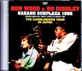 ミック・ジャガーのソロ来日直前だった事でも思い出深いロン・ウッド&ボ・ディドリーの“THE GUNSLINGERS TOUR IN JAPAN”。1988年に突如実現した夢の光景を目撃できる象徴映像がリリース決定です。そんな本作が撮影されたのは「1988年3月7日:中野サンプラザ公演」。そのマルチカメラ・プロショットです。1988年の春は、まさに夢心地の季節でした。前1987年にストーンズ解散の噂が世界中を駆け巡り、「結局、来日公演は夢のまた夢だった」と絶望に打ちひしがれる中で突如としてロニー&ディドリーの来日が発表。さらに間髪入れずミックのソロ来日も実現し、たった1ヶ月で両者を生体験できたからです。もちろん、2年後にはストーンズ&ポール・マッカートニーの連続来日で昇天したわけですが、1988年の3月も現実とは思えなかったものです。ともあれ、そんなロニー&ディドリー来日の象徴と言えば、中野サンプラザ公演のテレビ放送。当時から幾多の既発群を生み出してきた定番中の大定番ですが、本作はコアな記録マニアによる極上マスターからDVD化された最高峰版なのです。まずは、記憶を思い起こすためにも当時の日程から振り返ってみましょう。・3月2日:THE LIVE-INN・3月3日:東京郵便貯金会館・3月4日:北海道厚生年金会館・3月6日+7日:中野サンプラザ ←★ココ★・3月8日:東京郵便貯金会館