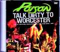 サウンド、生々しさ、歴史感、そして楽しさ……あらゆるポイントで100点満点なライヴアルバム「LIVE INN 1986」。その傑作には、密室の光景が浮かぶクラブ時代の映像を……と思うのですが、さすがにレアすぎて記録が見当たらない。そこで、ちょっと時代はズレますが、「1988年4月22日ウースター公演」のオーディエンス・ショットを贈ります!シングル「Talk Dirty to Me」「I Want Action」のヒットによって、デビュー作「LOOK WHAT THE CAT DRAGGED IN」を全米3位に送り込んだPOISONは、その勢いに乗ってセカンドアルバム「OPEN UP AND SAY... AHH!」を制作。リリースに先立ってDAVID LEE ROTHの前座として全米ツアーに旅立ちます。すでに1987年のブレイクでクラブバンドからは脱していましたが、まだまだ一発屋の次元で、ヘッドラインでアリーナを満員にするところにまでは達していなかった時代の映像です。そんな本作は、ステージ左側の2階席から見下ろすアングルで、ステージ全景を遮蔽物ゼロの広々とした視界が素晴らしい。距離は少々ありますが、見どころを逐一ズームしてくれるので、アクションたっぷりのライヴを存分に楽しめます。そのアクション、1万5,000人規模の巨大な会場のステージを所狭しと駆け回るというもの。80年代のオーディエンス撮影というと、走り回る姿を追うと手ブレでグチャグチャになるのが普通なのですが、本作はビシッと動きを押さえながら手ブレも気にならない。この撮影者は、やたらとライヴ慣れしている匠のようです。そんなパフォーマンス以上に驚かされるのが観客。このツアーはデイヴ・リー・ロスの前座だったわけですが、メインアクトでもないの大ウケ。ヒット曲はもちろんのこと、まだリリースされていない新曲の「Back To The Rocking Horse」「Nothin' But a Good Time」でも大歓声で迎えられ、ブレット・マイケルズのMCひとつにまで黄色い嬌声が大波のように押し寄せ、CCデヴィルがのけぞるだけで大騒ぎ。「Rock And Roll All Nite」で客席にマイクを向けた時のリアクションと言ったら………この日の観客は、デイヴではなくPOISONが目当て!?!?ただ惜しむらくは、前座だけに8曲+ギターソロと短いステージなこと。そこで、前日「4月21日ユニオンデール公演」も2曲(+ギターソロ)分、ボーナス収録しました。こちらのアングルは本編の反対となるステージ右側ですが、やはり2階席からバツグンの安定感で撮影しています。この日もウースターと同様の大ウケ。「Rock And Roll All Nite」では、撮影者までたまらず歌い出す始末です。こんなバカウケを連日カマしているんですから、そりゃあ「OPEN UP AND SAY... AHH!」が800万枚も売れるわけです。成功の階段を一足飛びに駆け上がり始めたPOISON。ではありますが、まさに“女神の微笑み”を全身に受けて輝く姿をしっかりと記録した1本です。