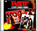 【初期ビデオ・クリップ集(4曲)】最後のセクションは、ライヴではなくPV集。デビューE.P.『RATT』からの「You Think You're Tough」の他、『OUT OF THE CELLAR』の「Round and Round」「Back for More」「Wanted Man」を収録しています。当時のMTVでもお馴染みだったクリップたちだけに、その80年代感が凄い。御大オジーも登場する「You Think You're Tough」、上流階級をぶちのめすドラマ仕立てがらしさ満点な「Round and Round」、オープンカー乗り回すLAの街角と煌びやかなステージが交錯する「Back for More」、ツアーバスが西部劇に迷い込む設定が豪快すぎる「Wanted Man」……。グラマラスなメンバーも目に染みますし、それに負けない美女達の盛り髪も「ザ・LAメタル」そのものなのです。貴重すぎるライヴの現場や、煌びやかなPV達。英国産ヘヴィメタルに憧れつつ、まったく違う世界観を築いたLAメタルのイメージを全世界に広めていった初期RATTの映像集です。後にメタル本家英国のJUDAS PRIESTやオジー・オズボーン、WHITESNAKEも巻き込んでいくヘアメタルの開花であり、その急先鋒だったRATTの姿。Perkins Palace, Pasadena, CA, USA 17th June 1983 1CAM-AUD Rock Palace, Salt Lake City, Utah, USA 18th March 1984 PRO-SHOT (78:54)
