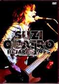 【1975年の薫りにむせ返るオフ・ステージ】そして、ライヴ以上に時代臭にむせ返るのが、合間に挿入されているオフショット。レセプション会場や浅草の観光シーンが描かれるのですが、ここでも「ロックンロールの女王」と書かれた手書き看板が下手くそだったり、プレゼントを渡す(レコ社の?)お偉いさんがバーコード親父だったり。スージーもお約束なバカでかいサングラスや首スカーフを身につけ、タバコをふかしている。1975年と言えば、バンドQUEENの初来日もありましたが、あの金屏風記者会見ともシンクロする時代感なのです。さらに極めつけなのがレコード/楽器店の訪問。画面の端々にチラ見えするLPの数々がえらく懐かしく、壁には「ブルーノート10インチ盤復刻」の看板が誇らしげ。よく耳を澄ますと店内BGMはアリス・クーパーの「Scholl’s Out」だったりしますし、真剣にベースを試走しているスージーのあどけない表情もたまらない。画面やスピーカーから埃っぽいヴィニール臭まで漂いそうなリアリティなのです。わずか6曲・約30分ではありますが、クオリティも内容も特濃・極上な映像傑作です。私たち日本人の郷愁を直撃するだけでなく、世界的にも25歳のスージーが吠える貴重な1枚。どうぞ、日本盤レーザーディスクだからこそ残し得た史上最高峰クオリティ版でお楽しみください。1975年のジャパンツアーを特集したオフィシャル映像作『IN JAPAN 1975』のDVD化。1991年に発売された日本盤レーザーディスクから精緻に復刻された史上最高クオリティ版です。とにかく25歳で列島を沸かせていたスージーが美しくも格好いい! 黒レザーや金ラメのジャンプスーツに身を包み、激しく髪を振り乱してドスの利いたシャウトを轟かせる。その立ち居振る舞いは性別を超えたロックスター然としたオーラをまき散らし、表情ドアップになると端正な顔立ちと上気した肌艶が美しく輝く。オフショットでも1975年の街並みやレコード店などが時代感満点。まさに文化遺産級の映像傑作です。