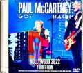 アフター・コロナの地球上でもっとも熱い注目を集めていると言っても過言ではない“GOT BACK”。その最新映像にして、これまでにないド級の迫力で迫る傑作がリリース決定です。そんな本作が撮影されたのは「2022年5月25日ハリウッド公演」。その最前列オーディエンス・ショットです。また、本稿に目を留められた方ならご存知と思いますが、当店では現在進行形の“GOT BACK”と併走するように、様々なアイテムでリアルタイム・レポート。特に映像作品は大好評を賜っています。ここでツアーの現状と、これまでの映像コレクションの整理を兼ねてツアー・スケジュールを振り返ってみましょう。・4月28日『SPOKANE 2022: MULTI CAM』・5月2日:シアトル公演・5月3日『SEATTLE 2022 2ND NIGHT: THE VIDEO』・5月6日:オークランド公演・5月8日『OAKLAND 2022 DAY 2: THE VIDEO』・5月13日『LOS ANGELES 2022: THE VIDEO』・5月17日:フォートワース公演・5月21日:ウィンストン・セーラム公演・5月25日:ハリウッド公演 ←★本作★・5月28日:オーランド公演 >>今ここ<<・5月31日ー6月16日(6公演)これが現時点での“GOT BACK”。本稿が公開される頃には、ノックスビルで11公演目の準備が着々と進んでいることでしょう。そんな中で本作のハリウッド公演は9公演目にあたるコンサートでした。そんなショウで記録された本作は、ド肝を抜く最前列ショット。最前列だけあって前方客は影も形もなく、位置的にはステージ左寄りで真っ直ぐ前を向くとピアノを弾くポールが目の前という感じ。むしろ、視界を邪魔するとすれば、バンド側の撮影クルーでしょうか。実際、画面に映り込む影は観客ではなくカメラのクレーンですし、ステージ下にはヘッドフォンをしたスタッフがPCモニターを皆が作業している姿も見える。その画面にはマルチカメラのスイッチングをコントールが映し出されるなど、コンサートと言うよりはほとんどリハーサル風景のような光景なのです。最前列感覚をお伝えしたくて余計な話ばかりしてしまいましたが、もちろん本作のメインはポールの姿。特にズームなどはしないのですが、そもそもその必要がないほどに近いのです。そして、その「ズームしないカメラワーク」と「最新デジタル機材の高画質」が合わさった光景は、完全に肉眼感覚。誰もが一度は体験してみたい「最前列からのポール」をたっぷりと体験させてくれるのです。なんとも夢のような映像ですが、完全無欠というわけでもありません。その最大の難点は、不完全収録な事。ショウの冒頭6曲が収録されて折らず、「Foxy Lady」ジャムからスタート。その後もカットされた曲もあり、トータルでは全36曲中24曲という収録なのです。では、どの曲が観られるのか、ここでショウの流れに沿ってチョックしてみましょう。(未収録:6曲)収録パート#1・Getting Better/Let 'Em In/Nineteen Hundred and Eighty-Five(未収録:1曲)収録パート#2・Maybe I'm Amazed/I've Just Seen a Face/In Spite of All the Danger/Love Me Do(未収録:4曲)収録パート#3・Lady Madonna(未収録:1曲)収録パート#4・Being for the Benefit of Mr. Kite!/Something/Ob-La-Di, Ob-La-Da/You Never Give Me Your Money/She Came in Through the Bathroom Window/Get Back/Band on the Run/Let It Be/Live and Let Die/Hey Jude/I've Got a Feeling/Birthday/Helter Skelter/Golden Slumbers/Carry That Weight/The End ……と、このようになっています。ショウ中盤までは数曲ずつの塊で撮影しつつ、やや駆け足に収録。その様子が変わるのは21曲目の「Being for the Benefit of Mr. Kite!」から。ここから終演までは全曲を押さえきっており、グイグイ盛り上がっていくハイライトをたっぷりと楽しめる。そう、パイロの炸裂音にド肝を抜かれる「Live and Let Die」も、ジョンとのデュエットで話題の「I've Got a Feeling」も、手を伸ばせば触れそうな間近感で体験できるのです。そんなショウの後は、体験感に華を添えてくれるボーナス映像も追加収録。会場となった“セミノール・ハード・ロック・ホテル&カジノ”までの道すがらと、現地の様子、さらには内部で開かれている「ビートルズ展」の展示物も紹介されているのです。このボーナス映像もコンサート本編と同じ人物が公開したものなのですが、普通の「会場風景」とは全然違う。何しろ、“セミノール・ハード・ロック・ホテル&カジノ”は完全なリゾート施設ですし、その夜景は豪華で煌びやか。内部のカジノも観ているだけで楽しくなってきますし、「ビートルズ展」にしても貴重な展示物に目移りしてしまう。こんなところでたっぷり愉しんだ上に、最前列でポールのショウを観たとは……本作の撮影者があまりにも羨ましくて、ちょっとイライラしそうです(苦笑毎公演から登場してくる映像群はそれぞれに傑作も連発していますが、それとも一線を画するド迫力の最前列ショットです。コンサートのベスト・シートは好みによって十人十色なものですが、そうは言っても「最前列」は誰もが一度は体験してみたい究極席なのも間違いない。そんな特等席を肉眼感覚で味わわせてくれる希代の名ショット。“GOT BACK”9公演