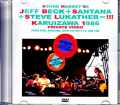 日本洋楽史の伝説ともなっているイベント“軽井沢サウンドマーケット’86”。TV放送とは異なり、目玉の共演ジャムも完全形で観られる衝撃映像がリリース決定です。そんな本作が撮影されたのは、もちろん「1986年5月31日/6月1日:軽井沢プリンスホテル」。ジェフ・ベック、カルロス・サンタナ、スティーヴ・ルカサーが並び立った伝説イベントの関係者ショットです。“軽井沢サウンドマーケット’86”と言えば、TV放送プロショットが大定番となってきたわけですが、本作はそれとはまったくの別映像。当時のSANTANAスタッフが個人的にビデオ撮影され、ジェフ・ベックの訃報を期に公開されたもの。伝説イベントの裏舞台を詳らかにする蔵出しの秘宝映像なのです。その内容は、大きく3つに分けられる。早速、個別にご紹介していきましょう。イベント前日(上野駅/リハ:約12分) まず登場するのはバンドとスタッフの移動シーン。約1分の短い映像ですが、今では様変わりしてしまった上野駅も昔懐かしい外観ですし、そこに普通に歩いてはいる姿も新鮮です。そこから一気に会場へワープ。イベント前日に行われたSANTANAのサウンドチェック・シーンが約11分に渡って映し出される。冒頭で「5月31日」と記したのはこのことで、画面にもしっかり「05.31.86」と表示されます。ここはもう裏舞台のむせ返るようなプライベート感。メンバーと一緒にステージに立って撮影されており、完全に手持ちのホーム・ビデオ撮影。画面の雰囲気は今にも自分の家族でも探しそうな感じなのですが、そこにいるのは正真正銘SANTANAの面々。すぐ目の前でバディ・マイルズが絶唱していますし、その向こうではカルロス・サンタナもハーフコートに短パンという不審者丸出しな姿で参加している。他メンバーも手を伸ばせば触れそうな距離ですし、それでも一向に気にせず、邪険にもしない。まさにプライベート撮影の極地なのです。そして、その光景は異様でもある。見た目はリラックスしていながら共演イベント前にした緊張感が漂い、ジョークに笑う表情もどこか引きつり気味。何より、演奏の熱量が不思議。曲を完奏するわけではなく、軽い音合わせなのですが、短いフレーズはシャープで今にも熱いインプロが燃え上がりそうでそのまま消える。チロチロとした種火が垣間見えつつ、後の大爆発を予感させる。まさに導火線のようなリハーサルなのです。当日の共演ジャム(完全版:約25分)そして、本作のメインとなるのは当日の大爆発。フルショウではありませんが、英雄ギタリスト3人が並び立ったジャムを完全一貫撮影している。そう、TV放送ではカットされた高揚感溢れるMCや曲間もシームレスでフル体験できる、史上初の映像なのです。もちろん、ここもTV放送には一切使用されていない独自のプライベート・ショット。しかも、その映像ニュアンスが美味しすぎる。ステージ直下のカメラピットから撮影されており、当然の事ながら遮蔽物は一切なし。つまり、ぶっちゃけた話が最前列のオーディエンス・ショット。「目の前に3人がいる」という体験感も強烈なら、伝説的なジャムを特等席から満喫する独り占め感も圧倒的。イベント未体験の方はもちろん、実際に足を運ばれた方でも「こんな場所から観たかった!」と思われるに違いない理想の光景が広がるのです。イベント終了後(約4分)本作のラストは、熱演を終えたメンバー達がステージを降りるシーンも収録している。ステージ衣装のまま階段を駆け下り、関係者達とねぎらい合うのです。雰囲気としては近所の夏祭りのようでもありつつ、そこで談笑しているのはSANTANAの面々。しかも、そこには生々しい会場アナウンスが漏れ聞こえており、凄まじいまでの現場感が吹き出すのです。以上、約42分に及ぶ夢のスタッフ体験記です。メンバーと共に東京を移動し、リハーサルに立ち会い、特等席から奇跡の共演を目撃できる。「共演ジャムの完全映像」というだけでも胸いっぱいですが、それ以上に本作でしか味わえない体験感に胸が震えます。これまでも幾多の記録でアーカイヴしてきた“軽井沢サウンドマーケット’86”ではありますが、そんな中にあっても格別。伝説イベント“軽井沢サウンドマーケット’86”の秘蔵映像がリリース。大定番のTV放送とはまったく別の関係者ショットで、貴重なリハの他、伝説のジャムもノーカットで現場体験できます。Live at Prince Hotel, Karuizawa, Japan 31st May & 1st June 1986 (42:08) Santana 1. Ueno Station 2. Soundcheck Live with Jeff Beck, Santana & Steve Lukather 3. Super Boogie 4. Hong Kong Blues 5. People Get Ready 6. Johnny B. Goode Jeff Beck - Guitar Jan Hammer - Keyboards Simon Phillips - Drums Doug Wimbish - Bass Jimmy Hall - Vocal, Saxophone 7. After Show COLOUR NTSC Approx.42min.
