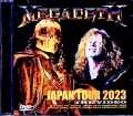 メタルシーンの話題を独占しているMEGADETHの最新ジャパン・ツアー。その現場を特等席体験できる極上映像が登場です。そんな本作に収められているのは2公演分のオーディエンス・ショット。「2023年2月24日:豊洲PIT公演」をDISC 1、「同2月28日:グランキューブ大阪公演」をDISC 2に配した2枚組です。最新来日の映像と言えば、日本武道館の配信プロショットが話題を呼んでいますが、当然のことながら本作は別公演。まずは日程で各映像を整理しておきましょう。・2月24日:豊洲PIT ←★本作DISC 1★・2月27日:日本武道館 ←※配信映像・2月28日:グランキューブ大阪 ←★本作DISC 2★【最前列/中央からの究極MEGADETH体験】以上、全3公演。つまり、本作は日本武道館以外の全部。配信映像と本作で最新来日公演をコンプリートできるわけです。そんな本作は、単なる「配信とは別公演映像」では済まない。それが異様極まるクオリティです。特に強烈なのが豊洲公演(DISC 1)でして、なんと最前席! それもステージ・センターのド真ん中!! すぐ目の前にマイク・スタンドがあり、そこにデイヴ・ムステインが仁王立ちになって歌う・弾く・吠える! 最前ですからムステイン以外に視界に入るはずもなく、彼と面と向かい合うフルショウ………これって、究極のMEGADETH体験じゃないですかっ!!!大阪公演(DISC 2)はそこまでではないものの、やはりムステインの真っ正面で5列目くらい。こちらも普通のオーディエンス・ショットではありえないド迫力ショットです。しかも、この距離感は左右にカメラを振るとステージの端から端まで見どころをキチンと押さえられる。究極体験の衝撃力は豊洲公演(DISC 1)に譲るものの、映像作品としての見やすさ、ダイナミズムはこちらの方が上(さらに付け加えれば、近すぎないサウンドも上)なのです。【武道館よりも好調だった2公演】そんな超・特等席から楽しめるのは、日本武道館よりも好調だった2公演。セットも2公演で微妙に異なりますので、ここでまとめて整理しておきましょう。クラシックス(9曲)・ラスト・イン・ピース:Hangar 18/Tornado Of Souls/Holy Wars... The Punishment Due・破滅へのカウントダウン:Sweating Bullets/Symphony Of Destruction・その他:Peace Sells/Angry Again/Trust/Dread And The Fugitive Mind キコ・ルーレイロ加入後(5曲)・ディストピア:The Threat Is Real/Conquer Or Die!/Dystopia・ザ・シック、ザ・ダイイング:Soldier On!(★)/We'll Be Back ※注:「★」印は豊洲PIT(DISC 1)のみ。……と、このようになっています。基本的に日本武道館をスリムにしたスタイルで、最終の大阪では新曲「Soldier On!」も省略されてしまいました。しかし、大が小を兼ねるとは限らないのが音楽の面白いところ。セットをスリム化した効果はてきめんで、ムステインのヴォーカルが非常に好調なのです。さすがに「全盛期よりスゴい!」と言ったら盛りすぎですが、日本武道館の配信映像で甘く見ている方にこそ味わって頂きたい本領発揮のショウなのです。マーティ・フリードマン共演をプロショットで楽しめる武道館映像も歴史的でしたが、本作はまったく別の意味で歴史的。これまで幾多のMEGADETH映像をご紹介してきましたが、「ムステインと睨み合いながらのフルショウ体験」など本作以外では考えられません。配信プロショットがスゴいのは当然として、本作はそこから一歩踏み込んだコレクター諸兄に不可避な絶対作。「2023年2月24日豊洲PIT公演/2月28日:グランキューブ大阪公演」の超特等席オーディエンス・ショット。どちらもステージ中央を真っ正面に見すえたド迫力映像ですが、特に豊洲公演(DISC 1)は、なんと最前席! すぐ目の前のマイク・スタンドでデイヴ・ムステインが歌う・弾く・吠える! 彼と面と向かい合うフルショウ……まさに究極のMEGADETH体験ができる衝撃の映像作品です。Toyosu Pit. Tokyo, Japan 24th February 2023 AMAZING SHOT!!!(FRONT ROW) Grand Cube, Osaka, Japan 28th February 2023 AMAZING SHOT!!! Disc 1 Toyosu Pit. Tokyo, Japan 24th February 2023 1. Prince Of Darkness 2. Hangar 18 3. Dread And The Fugitive Mind 4. The Threat Is Real 5. Angry Again 6. Soldier On! 7. Sweating Bullets 8. Trust 9. Conquer Or Die! 10. Dystopia 11. Tornado Of Souls 12. Symphony Of Destruction 13. We'll Be Back 14. Peace Sells 15. Holy Wars... The Punishment Due 16. Outro (Silent Scorn) COLOUR NTSC Approx.88min. Disc 2 Grand Cube, Osaka, Japan 28th February 2023 1. Prince Of Darkness 2. Hangar 18 3. Dread And The Fugitive Mind 4. The Threat Is Real 5. Angry Again 6. Sweating Bullets 7. Trust 8. Conquer Or Die! 9. Dystopia 10. Tornado Of Souls 11. Symphony Of Destruction 12. We'll Be Back 13. Peace Sells 14. Holy Wars... The Punishment Due 15. Outro (Silent Scorn) COLOUR NTSC Approx.78min. COLOUR NTSC Approx.166min.(Total) Dave Mustaine - Lead Vocals, Guitar Kiko Loureiro - Guitar, Backing Vocals James LoMenzo - Bass, Backing Vocals Dirk Verbeuren - Drums