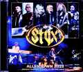 デビュー50周年を超え、今なお精力的に活動を続けているSTYX。その最新ステージを現場体験できる極上映像が到着です。そんな本作が撮影されたのは「2023年8月30日アレンタウン公演」。その絶景オーディエンス・ショットです。新型コロナ・パンデミック空けと共に『CRASH OF THE CROWN』を発表した彼らはその後ツアー三昧。その勢いは2年が経過した現在も衰えていません。そんな近況を知る意味でも、まずは現在進行中の活動スケジュールからおさらいしてみましょう。2023年・1月6日ー3月18日:米国#1(24公演)・4月13日ー5月13日:米国#2(15公演)・6月1日ー18日:米国#3(7公演)・7月6日ー9月2日:米国#4(22公演)←★ココ★・9月21日ー11月11日:米国#5(20公演)2024年・1月5日+7日:米国#6(2公演)これが現在までに公表されている2023年/2024年のSTYX。年間90公演という規模は全盛期にも劣らないわけですが、実は2000年代に入ってから(パンデミックの2020年/2021年を除き)ずーっとこのペース。日本ではなかなかSTYXの情報が入ってきませんが、とんでもないワーカホリックぶりです。現在は「米国#5」を控えて約3週間のオフを取っているところで、本作のアレンタウン公演はその直前。「米国#4」の19公演目にあたるコンサートでした。そんなショウを真空パックした本作は、「超」の付く絶景映像。視界に遮蔽物が入ってこないわけですが、それだけでは済まない。撮影が始まった最初の一瞬からするとかなりの前方席(5列目くらい?)らしいのですが、そこからすぐグイグイとズーム。あっと言う間にメンバーがドアップになっていき、その後はプロショットの1アングルの様な超絶景に早変わり。もはや撮影ポジションさえ分からないアップ映像が連続するのです。そして、そんな映像美に加えてカメラワークも匠の業。超アップのままズーム・アウトはせずに各メンバーを渡り歩くように見どころを追っていくのですが、その動きに迷いがない。狙ったメンバー1人ひとりを画面のド真ん中に据えたままアクションを追い、別のメンバーに視点を移すにしても揺れも迷いもなくシュート。そのキビキビした動きと安定感からすると、三脚を使用しているのかも知れません。そんな絶景&匠のカメラワークで描かれるのは、栄光の50年を濃縮したようなフルショウ。ここでセットも整理しておきましょう。クラシックス(11曲)・大いなる幻影:The Grand Illusion/Miss America/Fooling Yourself (The Angry Young Man)/Come Sail Away・古代への追想:Blue Collar Man (Long Nights)/Renegade・パラダイス・シアター:Rockin' the Paradise/Too Much Time On My Hands・その他:Lady/Lorelei/Mr. Roboto 再始動後(4曲) ・THE MISSION:Khedive・CRASH OF THE CROWN:To Those/Crash of the Crown/Lost at Sea ……と、このようになっています。基本的には「Mr. Roboto」に至るまでの黄金グレイテスト・ヒッツ。そこに新曲3つと前作の「Khedive」を散りばめており、歴史の総括と言うよりは「往年+近年」にフォーカスしたスタイルです。そして、そんなセットを綴るパフォーマンスがスゴい。凄すぎる。トミー・ショウは間もなく古希を迎えますし、ジェイムズ・ヤング&チャック・パノッツォに至ってはそれ以上。ところが、演奏は溌剌としていてアンサンブルも躍動感たっぷり。ドラマティックに煽りまくる生演奏を目の当たりにした観客も凄まじい盛り上がりで、単なる懐メロとはまったく次元が違う。「年間90公演」というハイペースをキープし続けている現役感は伊達ではないのです。21世紀も20年以上が経過し、往年のスター達も表舞台から消えたり、見る影もなかったり。それ自体が日常になった2023年に、まさかSTYXが全盛期ばりの躍動的なステージを繰り広げてくれるとは。本作は、想像を超えた次元に到達したSTYXの最新ライヴを特等席体験できるのです。フルショウを独り占めするような映像傑作。「2023年8月30日アレンタウン公演」の絶景オーディエンス・ショット。遮蔽物がないだけでなく、まるでプロショットの1アングルのような光景がスゴい。超アップのままズーム・アウトはせずに各メンバーを渡り歩くように見どころを追っていくカメラワークも匠の業です。往年のグレイテスト・ヒッツに『CRASH OF THE CROWN』の新曲群を散りばめたフルショウを特等席体験できます。Allentown Fairgrounds, Allentown, PA, USA 30th August 2023 AMAZING SHOT!!! 1. Intro 2. To Those 3. Blue Collar Man (Long Nights) 4. The Grand Illusion 5. Lady 6. Miss America 7. Crash Of The Crown 8. Lorelei 9. Band Introduction 10. Rockin' The Paradise 11. Fooling Yourself (The Angry Young Man) 12. Too Much Time On My Hands 13. Khedive 14. Lost At Sea 15. Come Sail Away 16. Mr. Roboto 17. Renegade James Young - guitars, vocals, Tommy Shaw - guitars, vocals Todd Sucherman - drums, percussion Lawrence Gowan - keyboards, vocals Ricky Phillips - bass, vocals Chuck Panozzo - bass, vocals Will Evankovich - guitar, vocals COLOUR NTSC Approx.76min.