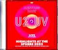 人類未到の超スペクタクルで全世界のド肝を抜いている“U2:UV Achtung Baby Live at Sphere”。その異次元体験を自宅に届けてくれるハイライト映像作がリリース決定です。そんな本作が撮影されたのは、もちろん新会場「スフィア(The Sphere)」。約160メートル大の球体内面に16KのLEDモニターを120万超も貼り付けた映像装置は超巨大なプラネタリウム状態で、サイズも解像度も文句なく世界最大。そのこけら落としとしてU2がコンサート・レジデンシー(ツアーと違って移動せずに同じ会場で公演を繰り返す興行スタイルのこと)を行っています。その超スペクタクルは全世界から注目を集めており、コンサート体験者も競うように映像を公開。1曲単位の細切れ映像やフル映像、マルチカメラ編集作……と様々な映像が噴出しています。本作は、そんな中でも「スフィア」の凄みを伝えるために精密編集されたダイジェスト映像を集成した1枚です。本作は大きく三部構成になっており、トータルで約90分となる映像作品。それぞれのパートで作風と公演日が異なりますので、個別にご紹介していきましょう 巨大スクリーンの超スペクタクル映像(10月7日)まず登場するのは、レジデンシー4公演目となる「10月7日」公演の特集映像。フル映像ではなく、各曲の見どころをシーンを集め、フルショウを約20分ほどで駆け足に紹介していくタイプの編集映像です。この映像の旨みは、美しさとスペクタクル。ステージ左側の2階席から見下ろし気味に捉えているのですが、その見晴らしが素晴らしい。眼下にアリーナ席が広大に広がり、超巨大なスクリーンと一体化。まるで「スフィア」内の空中に浮かんでショウを楽しんでいるかのようなスペクタクルなのです。基本的にはステージの直写よりも巨大スクリーンをメインとしたカメラワークですが、ときおり上下左右にゆったりと振るのがたまらない。直上まで広がるスクリーンに囲まれた全天感覚が圧倒的ですし、巨大スクリーンと対峙するスタンド席もまた壁のようにそびえていて凄いスペクタクル。まるで解除側が宣伝用に撮影したPVかと思うほどの極上映像です。ほぼ最前列な超・特等席ショット(9月30日)続いて登場するのは、2日目「9月30日」。これもショウの各曲をダイジェストした編集映像なのですが、見応えはまったく違う。最大のポイントは撮影ポジションで、なんとステージ真ん前の直近席(恐らく4列目くらい)。熱演を繰り広げる4人がすぐ目の前という超・特等席なのです。実のところ、あまりに間近なために超巨大スクリーンがホンの一部しか視界に収まらなかったりもするのですが、それもまた独得なスペクタクル。右にも左にも上にも90度以上見回してもまだスクリーンの端が見えない「囲まれ感」がスゴいですし、完全に真上を見上げて映像が振ってきたり、ウルトラマン大のボノと実寸のボノが目の前でシンクロしていたり。見やすくも分かりやすくもないものの、そのド迫力はほとんど最前列というポジションでしか目撃できない光景。まさに異次元の体験感が次々と襲いかかってくるのです 多彩な視点のマルチカメラ映像(9月29日)最後はオープン初日となる「9月29日」に撮影された映像集。これまでの2日分は、ほぼ1人の撮影者の映像をダイジェスト編集したものでしたが、このパートは様々な映像の組み合わせ。あまり頻繁ではないものの、曲中でもアングルが変わる「マルチカメラ編集」です。基本的には高高度(3階席?4階席?)からの見下ろしが多いのですが、その急勾配から見たスクリーンの巨大感がまたスゴいのなんの。青空は本物にしか見えず、夢のような幻想映像はワームホールをくぐっているようにしか思えない。そして、米粒を敷き詰めたような客席との遠近感。もちろんステージ直写のズーム映像もあるわけですが、それさえも引きとの対比で巨大感を演出している。長年凝り固まっていた「ドアップ=良い映像」の固定概念が木っ端微塵に破壊される超スペクタクルです。まさに人類未踏の最先端。次々と公開される別ポジションの視点がどれもド迫力で異なる魅力を放っている。ぜひとも現場で体験したいところですが、恐らく100回通ってもまったく違う衝撃を受けるのでしょう。本作は、そんな異次元開場の多彩な視点を手軽に体験しまくれる映像集なのです。なぜ、世界中がビビっているのか。どれほど異次元なのか。話題沸騰の超スペクタクル・コンサート“U2:UV Achtung Baby Live at Sphere”の極上映像がリリース。多彩な視点の映像をダイジェストし、超巨大プラネタリウム状態な「スフィア」の魅力をたっぷり90分体験できます。The Sphere, Las Vegas, NV, USA September / October 2023 AMAZING SHOTS!!! (92:53) 7th October 2023 1. MSG Sphere/Intro 2. The Fly 3. Mysterious Ways 4. One 5. Who's Gonna Ride Your Wild Horses 6. I Still Haven't Found What I'm Looking For 7. Elevation (Lady GAGA in the box) 8. Where The Streets Have No Name 9. With Or Without You 10. Epilogue 30th September 2023 11. The Sphere 12. Zoo Station 13. The Fly 14. Even Better Than The Real Thing 