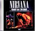 本作に記録されているのはCDと同じ「1991年12月7日レンヌ公演」。そのプロショット映像/サウンドボード録音/オーディエンス録音を活用し、海外マニアがフルショウを再現させた編集作品です。言葉にすると何やら複雑そうですが、実はシンプル。各素材の特徴が分かれば、自然と本作の内容もイメージできますので、それぞれご紹介していきましょう。ワンカメ・プロショット(2曲分)・Jesus Wants Me For A Sunbeam/Smells Like Teen Spirit 本作で最重要とされている映像ソース。たった2曲で会場後方からのワンカメ撮影なのですが、現地の放送局“フランス3”で放送されたTVプロショットです。もちろん、極序言うクオリティのベスト・ソースが使用されており、ノイズレスの映像美で革命真っ最中の歴史的なNIRVANAの姿が目撃できます。FM放送サウンドボード(9曲分)・Baba O'Riley/Drain You/School/Smells Like Teen Spirit/About A Girl/Polly/Breed/On A Plain/Blew プロショット映像に次いで重視されているのが大定番のFM放送サウンドボード。従来通りの放送マスターなので9曲分ですが、クオリティはCDにも負けない極上クオリティです。上記のプロショット2曲はTV放送の音声はチリチリとノイズ入りでしたので、FM放送版に差し替えられています。映像のない7曲分に関してはカート・コバーンの静止画に音声が被せられています。極上オーディエンス録音(5曲+補完用)・Jesus Wants Me For A Sunbeam/Aneurysm/Sliver/Been A Son/Negative Creep 最後のソースは極上級のオーディエンス録音。元ソースはフル録音であり、本作ではFM放送されなかった5曲や曲間パートなどを補完するのに採用されています。驚きなのは、そのクオリティ。このショウは5種類の客録が知られていますが、本作はベスト録音が採用されており、極太なFM放送サウンドボードと接続されていてもまったく聴き劣りしない。本来であれば、CDのフル・サウンドボードと差し替えるのが筋なのですが、あまりにも素晴らしいサウンドなので海外マニアが製作したままでDVD化致しました。2曲・約8分ながら貴重なプロショットを軸としつつ、海外マニアがフルショウ・サイズに拡張させた映像作品です。ひとつの音楽作品としても素晴らしく、良いとこ取りで組み上げた従来マスターのサンプル盤としても面白い1枚。Salle Omnisports, Rennes, France 7th December 1991 PRO-SHOT/AUD 1. Intro 2. Baba O'Riley 3. Jesus Wants Me For A Sunbeam 4. Drain You 5. Aneurysm 6. School 7. Smells Like Teen Spirit 8. About A Girl 9. Polly 10. Sliver 11. Breed 12. Been A Son 13. Negative Creep14. On A Plain 15. Blew COLOUR NTSC Approx.48min