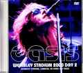 オアシスのライブ史にあって、これほどまで初日と二日目で内容がまったく異なってしまったギグというのもそうそうないのでは…と思える迷演が2000年ウェンブリー・スタジアム。初日は後の「FAMILIAR TO MILLIONS」各種オフィシャル・リリースが実現しましたが、二日目に関してはリアタイでのテレビ放送が実現しています。よって2000年のウェンブリー二日間はそれぞれにプロショット映像が存在している訳ですが、二日目はリアムが泥酔した上でステージに現れ、しかもそれがテレビで放送されてしまうという、今では考えられないような事態となりました。先のオフィシャル・リリース時にノエルが「どちらの日を使うかなんてまったく迷わなかった…二日目はひどかったからね」と発言したように、二日間がまるで違う演奏内容となってしまったのです。まず2000年のツアー自体がオアシスのキャリアの中で見過ごされがちな時期であったことはCD「MARSEILLES 2000」のリリース時にも述べた通りですが、ウェンブリーに関しても初日が先のタイトルでリリースされたことで二日目に関してはテレビ放送されたにも関わらず、現在ではすっかり入手困難な映像と化してしまいました。テレビ映像ということから一応YouTube上でも見られるものの、極度に圧縮されたバージョンで画質の劣化が半端ない。また近年トレーダー間に出回った「2ND NIGHT IN A SHIT HOLE」はYouTubeのそれよりはるかに上質だったものの、代わりに音声がモノラルという大きな欠点を抱えていました。しかし今回イギリスのオアシス研究家から提供いただいたのは「2ND NIGHT~」より画質が良いのはもちろん、何より音声がちゃんとステレオで収録されているバージョン。まだ録画メディアがVHSの時代の放送でしたので、今回のバージョンも現在のデジタルのレベルからすると若干ながら粗い画質ではあるものの、それでもYouTubeや「2ND NIGHT~」とは比べ物にならない見やすさ。先の理由からYouTube上でもまともなバージョンがなかっただけに、今となってはこの映像を見たことがない…という方も少なくないのでは。こう言っては何ですが、何しろ前日とまるで雰囲気が違うので見どころの連続。リアムがどうしてここまで酔った状態でステージの登場したのか理由は定かではありませんが、登場するなりこのスタジアムがライブ・エイドの舞台となったことを思い出したのか「ボブ・ゲルドフ!ファッキン・シンプル・マインズ!」とまくしたてるテンションの高さ。それでいて相当にぐでんぐでんな歌いっぷりが「Who Feels Love?」辺りから加速、また歌詞を飛ばしてしまう箇所まで散見されるほど。なるほどノエルが「どの日を採用するか迷わなかった」というのも当然かと。おまけにリアムは演奏中も歌のないパートですらマイクに向かってまくしたてており、大人しくしているという事がない。「Gas Panic!」辺りから本格的にノエルに絡みだし、それをいかにも面倒臭い表情を浮かべる彼の表には爆笑。ところがリアムは酒の勢いもあってひるまず、遂には「Cigarettes & Alcohol」の前でノエルにキスしてみせるという(会場は大歓声が起こります)。以降はMCもまるで兄弟漫才の様相。アンコールになってもリアムは引っ込まず、他のメンバーが再び登場したのを見計らって引っ込むという有様。それでもリアム以外のメンバーはあくまでプロフェッショナルに徹して演奏に没頭、観客も盛り上がるなど、それぞれがバラバラな振る舞いの空間と化しながらもライブとして成立しているのがまた面白い。とにかく最後までハイテンションで振り切れたリアムのふるまいが前日とはまるで別人。「Shakermaker」のエンディングではブルースハープを吹く仕草をみせるなど、本当に意味不明な(笑)アクションと発言の連続。それ故に二日連続でここまで内容の違うライブがプロショット映像で記録され、なおかつ放送されたとは何と大らかな時代でしょうか。反面それだけ酔っていたリアムのルックスが凛々しいというのもこの年ならではであり、最後まで波乱万丈だった2000年ツアーを象徴するようなツッコミどころ満載の迷演を捉えたプロショット映像が画質も音声もベスト・バージョンにて登場です!Wembley Stadium, London, UK 22nd July 2000 PRO-SHOT 1. Intro 2. Fuckin' In The Bushes 3. Go Let It Out 4. Who Feels Love 5. Supersonic 6. Shakermaker 7. Acquiesce 8. Step Out 9. Gas Panic 10. Roll With It 11. Stand By Me 12. Wonderwall 13. Cigarettes And Alcohol 14. Don't Look Back In Anger 15. Live Forever 16. Hey Hey My My 17. Champagne Supernova 18. Rock 'n' Roll Star 19. Outro 20. End Credit Liam Gallagher - vocals, tambourine Noel Gallagher - guitar, vocals Gem Archer - guitar Andy Bell - bass Alan White - drums PRO-SHOT COLOUR NTSC Approx.108min.