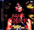 巨漢ケイン・ロバーツを従え、新進気鋭の重金属スタイルで復活を果たした80年代のアリス・クーパー。英国の象徴フェスへ殴り込んだ歴史的な体験型映像が登場です。その象徴フェスとは「1987年8月30レディング・フェスティバル」。カルトな現場を真空パックした伝説オーディエンス・ショットです。1987年と言えば、『CONSTRICTOR』の“THE NIGHTMARE RETURNS Tour”と、『RAISE YOUR FIST AND YELL』の“LIVE IN THE FLESH Tour”が切り替わる端境期。微妙な時期の違いで意味もショウ内容も変わってしまいます。まずはMCA時代をトータルで俯瞰しながら本作のポジションを探っていきましょう。1986年《9月22日『CONSTRICTOR』発売》・10月23日ー11月19日:北米#1(20公演)←※公式・11月23日ー12月5日:欧州#1(10公演)・12月12日ー12月31日:北米#2a(15公演)1987年・1月2日ー4月1日:北米#2b(59公演)・8月30日:レディング・フェス出演 ←★本作★9月28日『RAISE YOUR FIST AND YELL』発売》・10月15日ー12月31日:北米#3a(44公演) ←※NEW HAVEN 1987 1988年・1月1日ー3月6日:北米#3b(38公演)←※TORONTO 1988・4月1日ー5月6日:欧州#3(25公演)これが1986年ー1988年の帝王アリス・クーパー。本作のレディング・フェス出演は『RAISE YOUR FIST AND YELL』リリースの約1ヶ月前というタイミングでした。時期的には新作に伴う“LIVE IN THE FLESH Tour”のウォームアップでもおかしくないのですが、まだそこには踏み込んでいない。むしろ、半年前に終了していた“THE NIGHTMARE RETURNS Tour”の追加公演的なショウでした。そんな現場を伝える本作は、カルトなムードも満点のリアル映像。やや右寄りの中距離から撮影されているのですが、不思議なほど視界が広い。野外フェスは前方客で遮られやすく、あまりオーディエンス撮影向きとは言えないのですが、本作はその頭上を素通りしてステージを直写。さすがにビデオ普及期の80年代なので「プロショットのようなドアップ」とは行きませんが、シアトリカルなステージの様子が手に取るように観られるのです。そして、特筆すべきはサウンドで、野外だけに音を反射する天井や壁がない。そのため、PAが吐き出す出音を反響ゼロで拾っており、輪郭もくっきり鮮やかでディテールも微細部まで鮮明。すべての楽器がセパレート感もたっぷりに描かれるのですが、特に素晴らしいのはアリスのヴォーカル。えらくクリアに捉えられており、歌詞の一語一語どころか、そこ込められたニュアンスまでしっかりと味わえるのです。そんな映像美で描かれるのは、MCAメタル時代だからこそのフルショウ。前述のように、本作は“THE NIGHTMARE RETURNS Tour”の追加公演的なスペシャル・ステージ。同じ1987年ではあっても『NEW HAVEN 1987』では演奏しない曲もありますので、ここで比較しながら整理しておきましょう。コンストリクター(3曲)・The World Needs Guts(★)/Give It Up(★)/Teenage Frankenstein クラシックス(14曲)・ビリオン・ダラー・ベイビーズ:Billion Dollar Babies/No More Mr. Nice Guy/Sick Things(★)/I Love The Dead(★)/Elected(★)・悪夢へようこそ:Welcome To My Nightmare(★)/Cold Ethyl(★)/Only Women Bleed・その他:Be My Lover(★)/I'm Eighteen/Go To Hell/Ballad Of Dwight Fry(★)/School's Out/Under My Wheels※注:「★」印は“RAISE YOUR FIST AND YELL Tour”では演奏しなくなった曲。……と、このようになっています。ぶっちゃけた話が公式映像と同一セットなわけですが、本作のポイントはリアルな雰囲気。野外フェスではあるものの、アリスが出演したのは最終日の大トリ。現場は深い闇夜に覆われ、そこに赤系を基調とした照明に浮かぶステージがやたらと不気味なのです。そして、そのステージを見つめる現場ムードもやたらとカルト。ホラーなショウと夏フェスだからこそのスケールと開放感が何とも言えないマッチングなのです。例えば、母国アメリカのホール会場ではお馴染みの英雄を迎える熱狂に包まれるわけですが、本作は大洋を渡った英国。アリスはロック史の向こうからやって来た畏怖の対象なのです。本作からは、その異国情緒が肌感覚で味わえるのです。真夏の狂乱が終わり、忍び寄る秋の気配が混じり始めた英国フェス。その夜風がスピーカーから噴き出してきそうな体験型映像の傑作です。筋肉ギタリストを連れていたMCA時代そのものがアリス全史でも独得なムードでしたが、本作はその中でも濃厚なカルト感がムンムン。他のどの時期/会場でも味わえない唯一無二のショック・ロック。「1987年8月30レディング・フェスティバル」の伝説オーディエンス・ショット。野外フェスながら前方客の頭上を素通りする視界は広々としていて観やすく、音を反射する天井や壁がないために反響ゼロなサウンドもえらくクリア。ホラーなステージを英国ファンが畏怖の視線で見つめる中、筋肉ギタリスト:ケイン・ロバーツが暴れる異様な雰囲気。アリス全史でも他では味わえないカルトなムードがムンムンの1枚です。Little John's Farm, Reading, England 30th August 1987 AMAZING SHOT!!! 1. Pre-Show 2. Intro 3. Welcome To My Nightmare 4. Billion Dollar Babies 5. No More Mr. Nice Guy 6. Be 