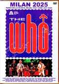2025年7月、ついにスタートしたフー最後のツアー『THE SONG IS OVER』のユーロ・レグの序盤、7月22日イタリア、ミラノ公演の模様を、2種類の良好オーディエンス・ショットにていずれも1時間50分ほどにわたりカップリング収録。これはdisc:1にはステージ正面からの安定したショット、disc:2はステージ左サイドからのショットと、全く別アングルによりコンサートの全貌を捉えており、正面からのカメラは「Love Ain't For Keeping」あたりからズームを効かせたクリアー映像、またサイドからのカメラはステージの全景やバンドメンバーの姿も上手く捉えていたりと、それぞれ特徴が。なおこの日はープニング「I Can't Explain」が亡くなったばかりのオジーに捧げられ、バックのスクリーンにオジーの姿まで映し出されるという、感動的な幕開けでスタート。その後はやはり代表ナンバーのオンパレードで、「My Generation」や「You Better You Bet」などのバックで流れるスクリーン演出も素晴らしく、特に「Won't Get Fooled Again」の後半における演出は圧巻。そして今回のツアーでフィナーレに演奏される「Song Is Over」で感動的な締めくくりとなるライブは、現状シンプルなバンド編成であるところも嬉しく、今後の公演も楽しみな逸品。Disc 1 : Recorder 1 at Parco della musica, Milan, Italy 22nd July 2025 : COLOUR NTSC Approx.105min 1. Intro 2. I Can't Explain 3. Substitute 4. Who Are You 5. Love Ain't for Keepin' 6. Bargain 7. The Seeker 8. Pinball Wizard 9. Behind Blue Eyes 10. The Real Me 11. 5:15 12. I'm One 13. I've Had Enough 14. Love, Reign O'er Me 15. Eminence Front 16. My Generation / Cry If You Want / See Me, Feel Me 17. You Better You Bet 18. Baba O'Riley 19. Won't Get Fooled Again 20. Band Introduction 21. The Song Is Over Disc 2 : Recorder 2 at Parco della musica, Milan, Italy 22nd July 2025 : COLOUR NTSC Approx.110min 1. Intro 2. I Can't Explain 3. Substitute 4. Who Are You 5. Love Ain't for Keepin' 6. Bargain 7. The Seeker 8. Pinball Wizard 9. Behind Blue Eyes 10. The Real Me 11. 5:15 12. I'm One 13. I've Had Enough 14. Love, Reign O'er Me 15. Eminence Front 16. My Generation / Cry If You Want / See Me, Feel Me 17. You Better You Bet 18. Baba O'Riley 19. Won't Get Fooled Again 20. Band Introduction 21. The Song Is Over