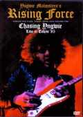 『Live ’85』…イングヴェイ・マルムスティーンもとい、ライジングフォースのファンはこのライブ映像に一体どれだけ泣かされてきたでしょう。アルカトラズ脱退後の1985年1月、日本のレコード会社の強力なプッシュのもと初めて自身のソロ・プロジェクトとしての来日公演を行い、その模様をビデオ・シューティングしたこの映像作品が発売された時、購入したファンは固唾を呑んでブラウン管の前で見守った訳ですが…そこから長い悪夢が始まりました。何しろファンが一番観たい、インギーがギターでリードを取る大半のシーンでエンピツ型に揺れる意味不明なエフェクト処理や画面分割を無意味に織り交ぜ、殆ど観るに堪えない・購入者への嫌がらせとしか思えない仕上がりになっていたのですから。この映像処理のあまりの不評ぶり(当たり前です)に発売元のレコード会社は慌てふためき、急遽この映像エフェクト処理を取り除いた『Chasing Yngwie ? Live in Tokyo’85』という別バージョンをリリースし直した事で当時のファンはひとまず溜飲を下げたものでした。というのもこの” Chasing Yngwie “バージョンはそのタイトル通りインギーを煩わしい映像エフェクトが一切無い映像で追っているだけでなく、先の『Live ’85』とはカメラアングルが一部差し替えられインギーのショットが多めになっていて、まさにファンが待ち望んだ映像そのものだったからです。しかしその後は版権等の問題からどちらのバージョンも販売停止となり、暫く入手困難になっていた訳ですが、2006年12月にタイトルを『Yngwie J. Malmsteen Rising Force ? Live In Japan ’85』と変えた日本版DVDがリリースされると、これが再びファンの物議と混乱を招きます。何故ならその内容はChasing Yngwieバージョンではなく、あの忌々しいエフェクト処理だらけの” Live ’85 “バージョンだったからで、ファンはまた苛立ちと幻滅の坩堝に叩き落されたのでした。以後、2015年現在に至るまでファンが最も望むChasing YngwieバージョンはDVD化されていない現状が続いている訳ですが…でもその長かった苦難も遂に終わりの時が来た様です。今週末、ファンが待ち焦がれていたChasing Yngwieバージョンを過去最高の高画質と高音質で収録した本DVDが登場するからです!!では何をもって過去最高の画質と音質か、という事になります。このChasing Yngwieバージョンを収録したブートレッグDVD-Rが既に他メーカーから出ている事も当然承知しております。それでも何故そう断言出来るのか。それはズバリ、本作が現時点でChasing Yngwieバージョンの最高ランクにあたる日本版レーザーディスク(POLV-1703)をハイエンド機材でデジタル収録しているからです。順序立てて説明しますと、このChasing Yngwieバージョンには当時3タイプが存在しており、それは2種のビデオカセット版(ベータhi-fi・VHS)と、その最上位ソフトとしてリリースされたレーザーディスク(※以降、LDとします)版でした。このLD版の特徴は何と言っても画質の良さです。水平解像度400本以上で表示されるその発色の良さと鮮明さは、ビデオ版で当時最高の画質を誇ったベータhi-fi版を軽く超えるものでした(※ベータhi-fiは240本が最大値)。それゆえアナログテープ特有の色の滲みも皆無ですし、音質の良さも各ビデオ版とは比べ物にならないほど際立っているのです。この” LD版 Chasing Yngwie “を盤面の傷やアルミ銀板の腐食・劣化が全く無い、保存状態極上の日本LD盤からハイエンド機材でデジタル変換したものが本作で、走査ノイズやチラつき等が一切無いウルトラ・クオリティを実現したプレスDVDとなっている訳です。ところが先に挙げた他メーカーのChasing Yngwieバージョンを収録したDVD-Rタイトル(※数種存在する様です)は、前記したビデオカセット(主にVHS版)をマスター使用しているケースが殆どで、アナログテープ特有の画面のヨレやトラッキングノイズ、果ては劣化したVHS版特有の色の滲み出しや発色の悪さがそのまま出ているものばかりです。加えてサウンド面でも音の抜けと透明感がいまひとつで、分離感もあまり感じられません。しかし本作はミント状態のLDをマスター使用しているのでそれらのマイナス要因が元々ありませんし、それを最新機材で念入りに精査リマスターした上でデジタル変換していますから、LD版のシャープな映像と分離感の良いサウンドが何の劣化も無いまま鋭く鮮明に飛び出してくるのです。ファンの方にはお馴染みの定番映像ですが、画質も音質も最高レベルの” LD版 Chasing Yngwie “ですので、そのグレードの高さを中心に見どころをかいつまんで御紹介致しましょう。まず映像冒頭でライブ当日(85年1月24日)の中野サンプラザの正面入り口付近やそのロビーの様子が映りますが、手持ちカメラによるホームビデオ的なこの映像もベータhi-fi・VHS版以上に映像の輪郭がシャープに出ているのが分かると思います。物販コーナーではリリースになったばかりの1stアルバム『RISING FORCE』のLPレコードや、このライブを主