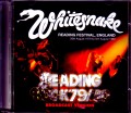 英国ブルースロックの至宝だった初期WHITESNAKE。その魅力を伝え続けてきた伝統サウンドボードの最高峰板がリリース決定です。その伝統盤とは、歴史に名高いレディング・フェスティバルのFM音源2種。『LOVEHUNTER』時代の「1979年8月26日」と、『READY AN' WILLING』時代の「1980年8月24日」をディスク1枚ずつに配した2枚組です。この2つのサウンドボードはどちらも定番中の大定番。FM放送されたことで数々のエアチェック盤を生み出し、公式『LIVE... IN THE HEART OF THE CITY』と同等……いえ、それ以上の名演でブルースロック時代の頂点ライヴアルバムとして君臨してきました。本作は、そんな超定番の最高峰となるもの。どちらもエアチェックではなく、電波を介していない超絶盤なのです。まず、ディスク1の「1979年編」ですが、こちらはアメリカの放送局“NEW JERSEY RADIO NETWORK”バージョン。その放送原盤からダイレクトにデジタル・トランスレートされており、エアチェック音源にありがちなノイズ類や音質の劣化がまったく見られない。もう一方のディスク2「1980年編」も出自は違えど、やはり極上。デジタル時代になってからのBBC再放送バージョンでして、劣化ゼロでディスク化されています。この2種は、10年ほど前に『SUMMER OF '79』『BLOOD AND FLAG』として初登場。瞬く間に既発を一蹴。その後も、現在まで最強の放送版として追随を許していないのです。「放送版として」もポイント。実のところ、この2種のサウンドボードは2011年の公式ボックスセット『BOX 'O' SNAKES』にボーナス収録。すでに公式化が実現しているのです。では、本作に価値がないかと言うと、さにあらず。公式ボックスが当に廃盤で数万円の高値となっているというのもありますが、本作のクオリティは公式バージョンにも負けていなかった。もちろん、完全に同じというわけでもない。公式盤はデジタル・リマスターされたスタジオ作品とセットになっている事もあって、かなり派手でダイナミズムを強調したサウンド。それに対し、本作は劣化のない鮮度はそのままに、大元アナログ・マスターの機微が正確に記録されているのです。もちろん、公式のダイナミック・サウンドが悪いわけではないものの、問題なのは主役がブルースロック時代のWHITESNAKEだという事。そのビートには脈打つグルーヴが息づき、ツインのハーモニーには深いブルースが呼吸している。そのジューシーな音楽にはアナログ感覚が絶妙にマッチしており、ギラギラとした公式CDよりもグッと滋味深いのです。そして、そのヒストリカルなムードを一層高めるのが番組のDJ。番組名やバンドについて触れ、スポンサーのコカコーラを宣伝する。あくまでも短く添え物的なコメントではありますが、これが最高に時代感を醸してくれるのです。もちろん公式CDには未収録ですし、ここも幾多の既発より遙かに高音質なオフィシャル・クオリティで楽しめます。そんなサウンド描かれるClassicスネイクの名演は、まさに英国ブルースロックの極み。「1979年編(ディスク1)」はペイス加入直後の2公演であり、実質的に新ラインナップのお披露目ショウ。元DEEP PURPLEが3人揃ったインパクトは巨大で、名物フェスには多くの報道陣も集結。その注目度をしっかりと理解した上で「DP再結成とは違う、新ラインナップの魅力」を叩きつけるような熱演を繰り広げる。放送枠に沿って編集されているので「Come On」や「Might Just Take Your Life」は未収録ですが、当時はまだリリースされていなかった「Walking In The Shadow Of The Blues」「Love Hunter」を早くも披露し、初期ならではの「Breakdown」「Whitesnake Boogie」も激アツ。そして、ペイスのドラムソロをフィーチュアした「Belgian Tom's Hat Trick」! その華麗にして圧倒的なドラミングはDEEP PURPLE全盛期そのままですし、その上に乗るジョン・ロードのハモンドも絶好調。「俺達はDPとは違うぞ!」の熱気がこもればこもるほど、黄金のDEEP PURPLEが思い出されてしまうという皮肉で最高な演奏がたっぷり楽しめます。そして、1年を経た「1980年編(ディスク2)」も圧倒的。当時は『READY AN' WILLING』が大ヒット中で、『LIVE... IN THE HEART OF THE CITY』の元になったハマースミス公演の2ヶ月後。そのアンサンブルはすでに成熟しており、“ディープだけどキャッチー”な白蛇流ブルースロックの魅力が全開。こちらもオープニングの「Come On」がカットされているものの、現場で2曲目だった「Sweet Talker」もまるでポールポジションのような勢いが凄い。『READY AN' WILLING』のヒット曲を盛り込んだセットは『LIVE... IN THE HEART OF THE CITY』の短縮版といった感じですが、その熱量はむしろ本作の方が上! 大量のオーバーダブで整えられた『LIVE... IN THE HEART OF THE CITY』よりも遙かに生々しく、母国フェスのトリを務める覇気は天をも突く。すべてが圧倒的ですが、極めつけはクライマックスの「Mistreated」。ジョンによるイントロのインプロヴィゼーションもカラフルなら、バーニーとミッキーの粘り気あるトーンも絶品