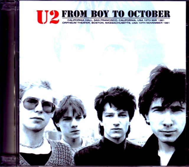 初期U2の高音質サウンドボード音源2種をカップリング。ディスク1には1981年「Boy」リリース期の4th Leg北米ツアー(3/3~5/31)より5月15日のサンフランシスコはカリフォルニア・ホール公演を約69分に渡って全19曲完全収録。「The Boy Tour」と題された初の本格的ツアーの終盤にあたり、The Oceanでスタートし同曲で終了するというセットが組まれており、「Boy」及びシングル曲で構成された、この時期を象徴するようなナンバーはどれも聴きごたえ満点。生々しい質感をもったミニマムなバンドサウンドは、初期U2の魅力を、アルバム以上にダイレクトに伝えてくれます。「A Day Without Me」のシングルのB面に収録されたインストThings To Make And Doが聴けるのはこの時期だけで貴重。ライブ全体の中でも中盤の面白いフックになっています。とにかく音質が優れているので初心者でも十分に楽しめる内容です。代わってディスク2には1981年「October」リリース期の2nd Leg北米ツアー(11/13~12/13)よりツアー中盤の11月14日はボストンのオーフェウム・シアター公演を約65分に渡って18曲完全収録。音の分離感も素晴らしい上質なライン録音で全編を収録。GloriaやFireといった「October」収録曲が加わり、楽曲に幅が広がり、その分、演奏のスケールが増してきた時期で、上昇気流まっしぐらと言った感じの勢いを感じさせる演奏は素晴らしく、どの曲も聴きごたえ満点です。場面をガラッと変える感じのOctober~Stories For Boysの流れも新鮮に響きます。5月公演テイク同様に、全編に渡って初期ならではの熱い演奏を楽しめるファン必携盤。内容・音質ともに大変優れており、初心者でも十分に楽しめるお薦めの一枚です。