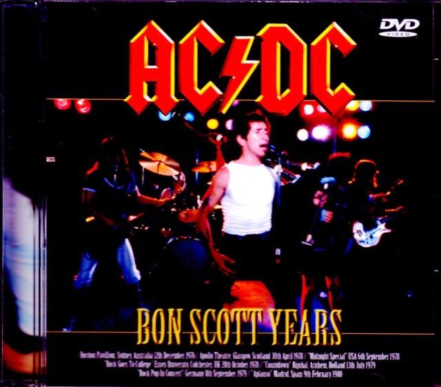 2017年マルコム・ヤング逝去の追悼アイテムとして、1976年から1980年にかけての、ボン・スコット時代のプロショット映像をコンパイルしたタイトルがここに。まず全7公演、28曲、2時間20分に及ぶレア・プロショット・ライブをひとまとめにしたもので、すでに『FAMILY JEWELS』や『PLUG ME IN』でオフィシャル化された映像もあるものの、ここでは曲単位に分割しているオフィシャルとは違い、ひとつひとつのプロショット・ライブを最長版マスターにて収録しており、以下それぞれの詳細は下記の通り。