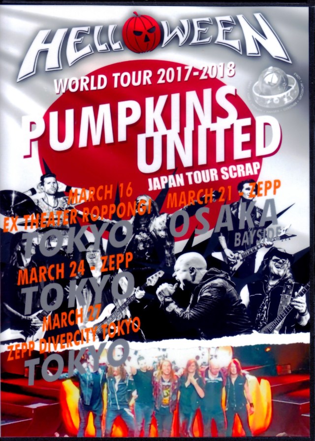 2018ついに日本でも実現した2018年「PUMPKINS UNITED WORLD TOUR」ジャパン・ツアーより、、その各地での模様を、モバイルも含む各種オーディエンス映像にてコンパイル。まず追加となった東京2公演を含めて、全7公演と大盛況となったツアーは初日3月16日EXシアター六本木を皮切りに、追加となった27日のZEPP DIVERCITY TOKYOまで行なわれ、その中から札幌と名古屋以外の公演から各数曲づつを、複数のオーディエンス・ソースから良好な映像ソースをセレクトし、安定したアングルをメインに編集。そしてその内訳はdisc:1には初日EXシアターをメインに、4回行われた東京公演を、ダイジェスト的にトータル146分にわたりコンバイルし、さらにdisc:2には21日、大阪・ZEPP OSAKA BAYSIDEでのライブを、コンプリートではないものの、103分にわたり収録。なお初日の六本木でのステージのみ、今回のワールト・ツアーに基づいたフル・セットで、その後アンディ・デリスの体調不良から、曲数が減ったり、通常のセットリストを少しシフト・チェンジしたりとアクシデントはあったものの、デリスの不調を埋めるべく、マイケル・キスクとカイ・ハンセンは絶好調で、歌いっぷりも素晴らしいうえ、「I'm Alive」の追加や、貴重なデュエットの「Why?」、カイ・メドレーにキスクの歌う「Eagle Fly Free」&「Keeper of the Seven Keys」など嬉しいサプライズも。よって結果的には全公演大盛況で終えた、2018年ジャパン・ツアーの必見メモリアル・アイテム。