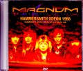 全盛期MAGNUMを刻みつけた幻のオフィシャル映像がリリース決定です。本作に収められているのは「1988年3月26日ロンドン公演」。伝統の名会場“ハマースミス・オデオン”でのショウを記録したマルチカメラ・プロショットです。このショウは公式に撮影されており、オフィシャル作品『ON THE WINGS OF HEAVEN 'LIVE’』としてもリリースされました。この作品はMAGNUMライヴの決定版となる名作中の名作だったのですが、80年代ロック映像の宿命であっと言う間に廃盤。その後も正式にDVD化されることもなく、長らく幻の映像作品となっていたのです。本作は、そんな名作を最高峰にDVD化したもの。当時は母国イギリスでVHSとレーザーディスクでリリースされたのですが、本作のソースはそのレーザーディスク。海外マニアが秘蔵していたミント盤を精緻にデジタル化した銘品なのです。そのクオリティは、文字通りオフィシャルならではの絶品プロショット。もちろん、撮影自体がアナログで現代のデジタル基準に照らすとやや暗めではあるものの、レーザーディスクならではの鮮度はバツグン。当時そのままの艶やかな映像美と鮮やかな発色をたっぷりと楽しめるのです。その映像美で描かれるショウは、まさに全盛のMAGNUM。代表曲「Kingdom Of Madness」「Sacred Hour」やレアな「Back To Earth」も演奏されますが、セットの軸は当時の新作『WINGS OF HEAVEN』。当時の彼らは新作リリースの度に新曲を大量に演奏していますが、このツアーは極めつけでして『WINGS OF HEAVEN』から「Different Worlds」以外の全曲が採用されている。『WINGS OF HEAVEN』と言えば、後年に完全再現ツアーも実現しましたが、本作はその名盤を創り上げたバンド・ポテンシャルそのもの。特にこのショウはアルバム・リリースの4ヶ月前にあたり、ファンも知らぬ新曲群に初対面のフレッシュ感たっぷりに紹介していくのです。何とも新鮮な演奏ではありますが、光景にも当時の薫りがたっぷり。メンバーは80年代後期らしい華やかな出で立ちで、ボブ・カトレイはデヴィッド・カヴァデールのようなロングコートを身にまとい、トニー・クラーキンやウォリー・ロウの衣装にもラメが輝く。一挙手一投足もキビキビとして、実に若々しいステージを見せてくれるのです。さらに映像の作りそのものにも時代感が滲む。オフィシャル作品という事もあるのでしょうが、1カット1カットの構図までキマリまくっており、カメラワークも多彩。徹底的に選び抜かれ、作り込まれており、曲の一瞬のキメまで凝りっ凝り。ややライヴの生々しさに欠けるほどの完成度は、まるでプロモ・クリップのよう(実際にクリップ映像も差し込まれています)。90年代のストリートロック復興以降のロック映像にはない、80年代ならではの輝きに満ちているのです。名作『WINGS OF HEAVEN』を世に送り出し、全盛期を究めていたMAGNUM。そのショウを極上のオフィシャル・クオリティで見つめられる名作映像です。そして、その全盛の輝きはMAGNUM自身だけでなく、80年代そのもの眩しさでもあった。ファン必見・必携の「目で観るWINGS OF HEAVEN」ではありますが、それ以上にあの時代のロックを愛するすべての方に触れていただきたい歴史的な大名作。